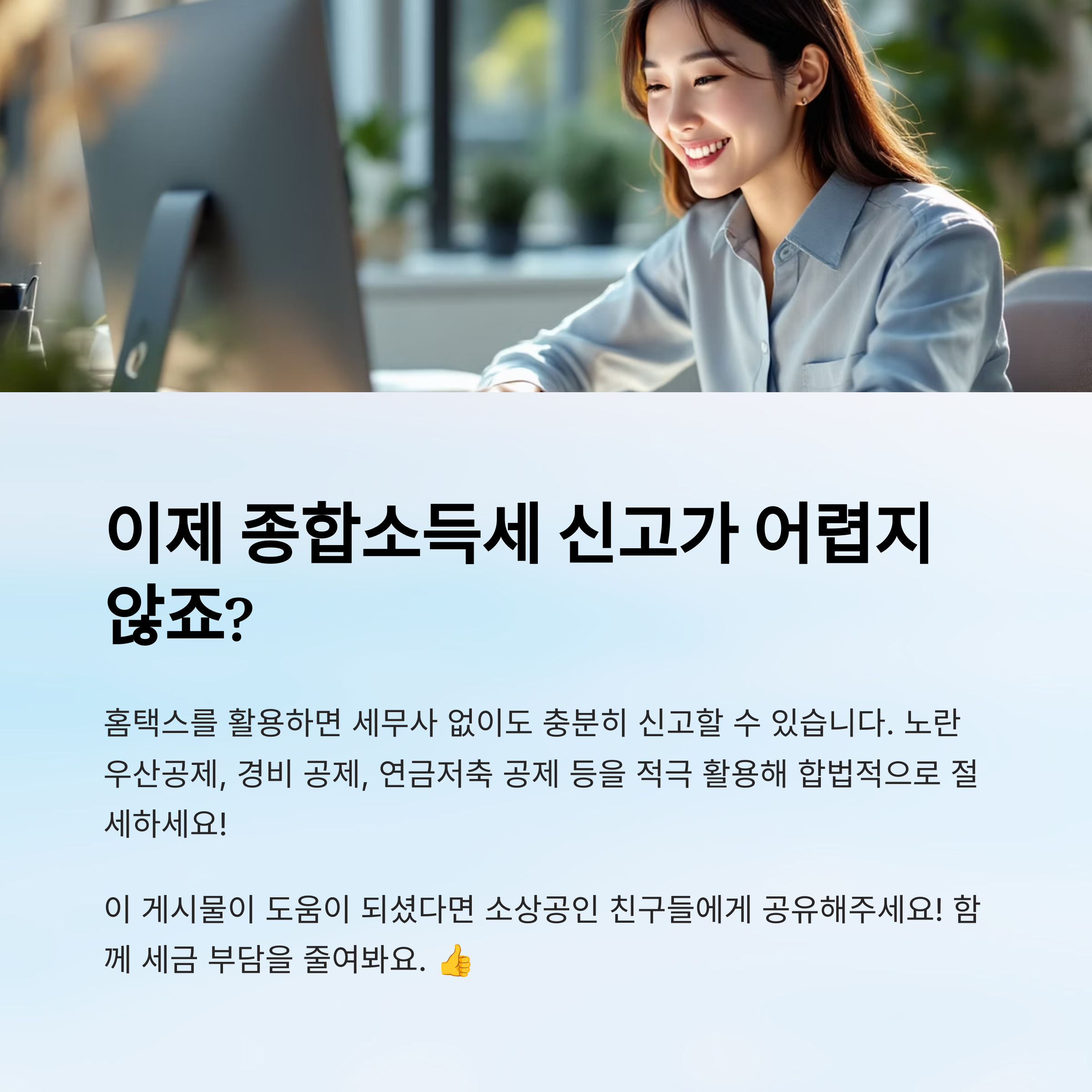 ✅ 종합소득세 신고는 어렵지 않아요! 홈택스를 활용하면 세무사 없이도 충분히 신고할 수 있어요. 😊