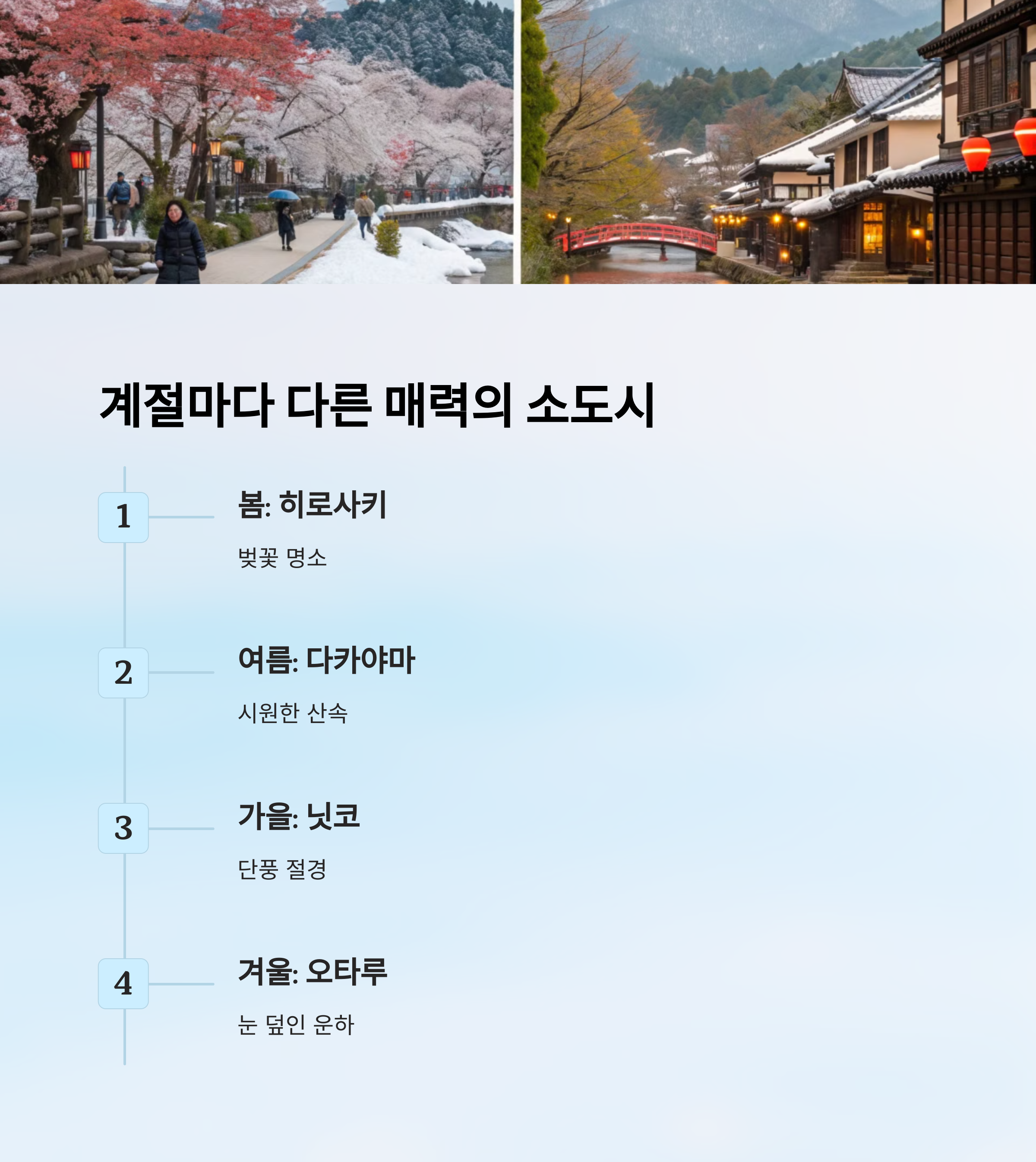 이제 계절별로 추천하는 일본 소도시 여행지를 소개해 드릴게요! 🌸