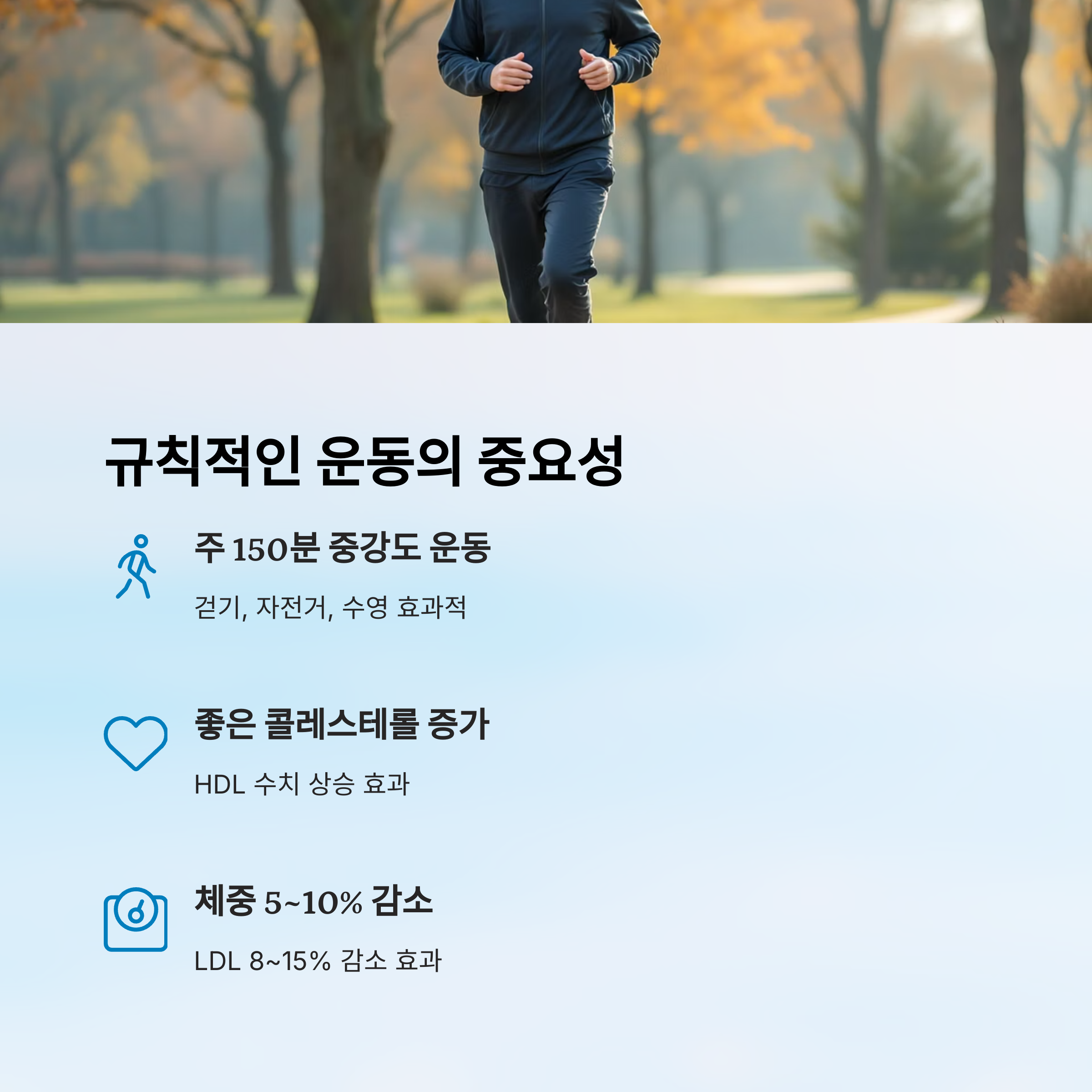 운동을 일상처럼, 즐기듯이 해보세요. 고지혈증도 멀어지고 삶의 활력도 살아날 거예요. 🏞️