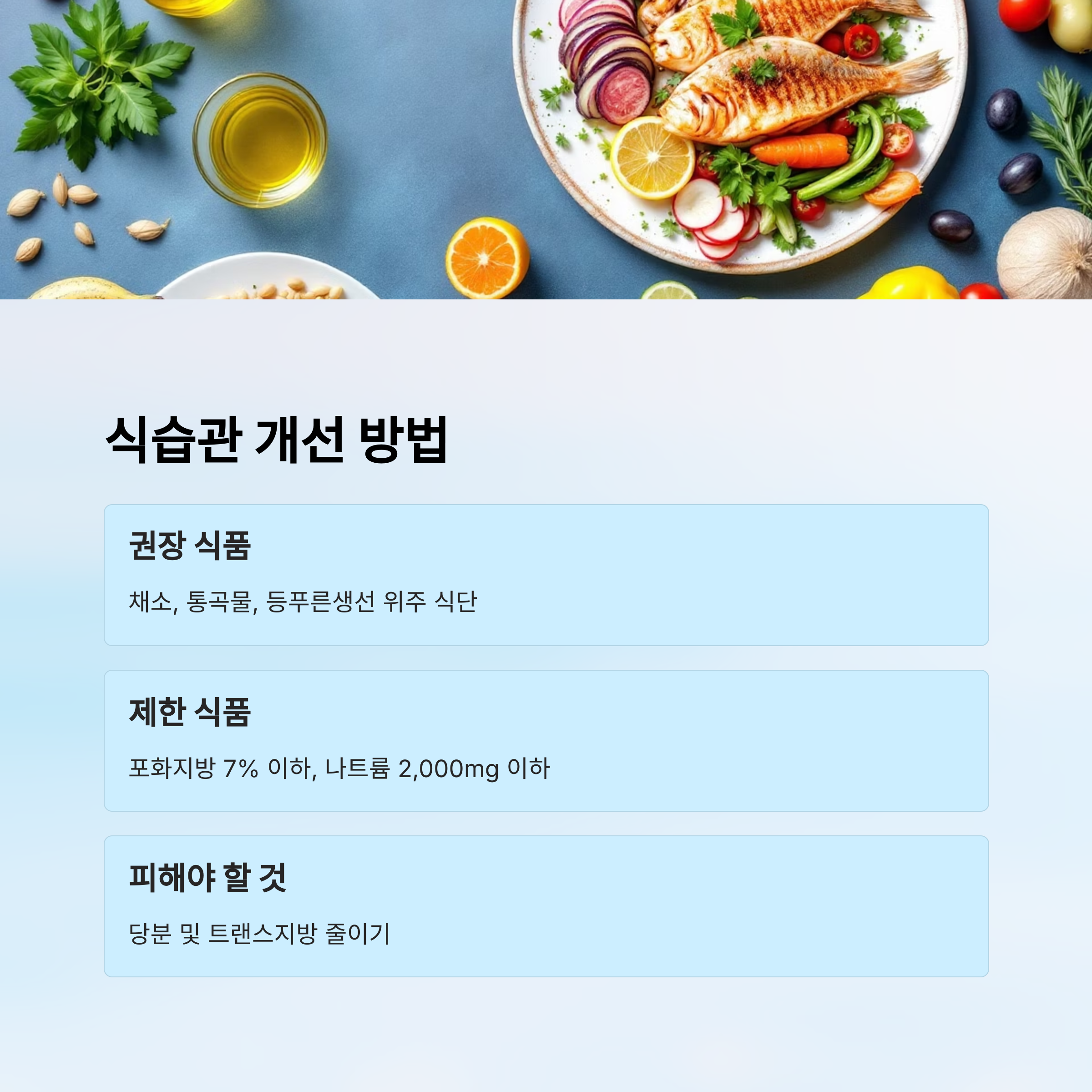 고지혈증을 자연스럽게 관리하기 위한 첫걸음은 식단이에요. 음식이 바로 우리의 피가 되고 혈관을 지배하는 만큼, 식습관은 정말 중요한 포인트랍니다.