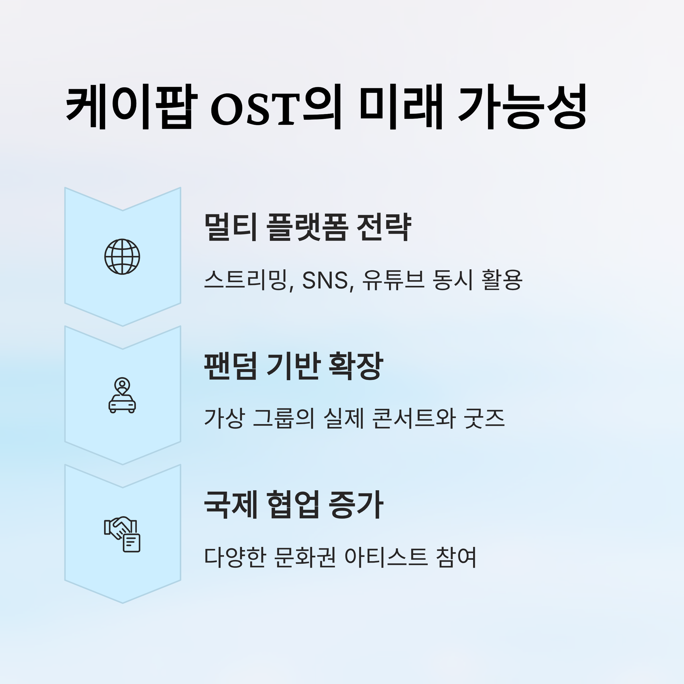 또한, K팝 특유의 팬덤 구조와 굿즈, 콘서트 문화가 OST에도 접목될 가능성이 커요. 예를 들어, 영화 속 가상 그룹이 실제 콘서트 투어를 진행하거나, OST 곡을 중심으로 한 뮤직비디오와 퍼포먼스 무대가 제작될 수 있죠. 이는 음악과 영화 모두의 수익 구조를 확장하는 길이 될 수 있어요.