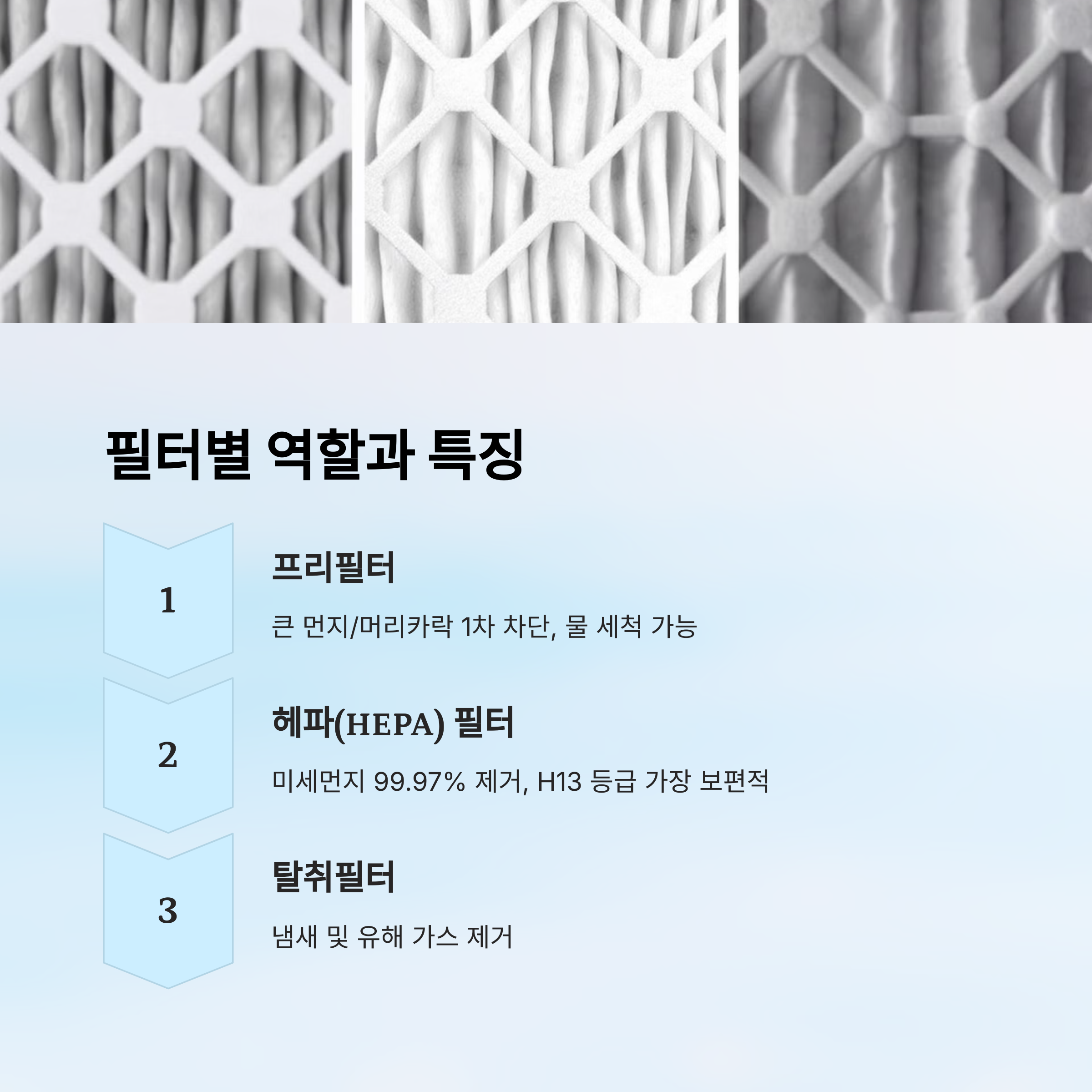 사용 환경에 따라 어떤 필터에 집중 관리해야 할지가 달라지기 때문에, 필터 종류와 기능을 알고 관리하는 게 정말 중요해요. 😊