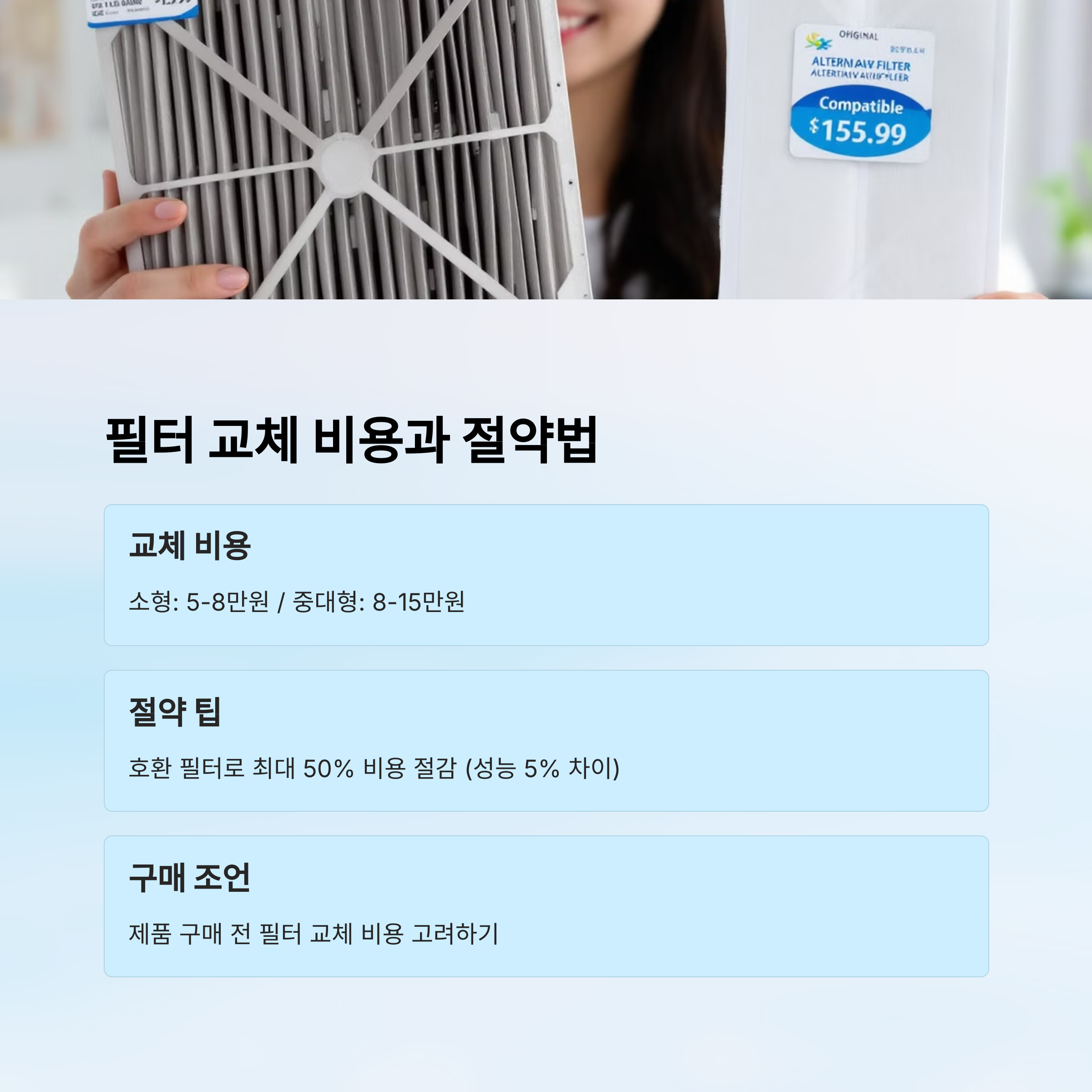 예를 들어, 호환 필터는 정품 대비 가격이 절반 이하인 경우도 많고, 기능도 거의 동일하게 제공돼요. 단, 호환 필터 구매 시에는 제품 후기나 인증 마크를 꼭 확인해야 해요. 무작정 저렴한 제품은 오히려 기기 고장의 원인이 될 수 있거든요.