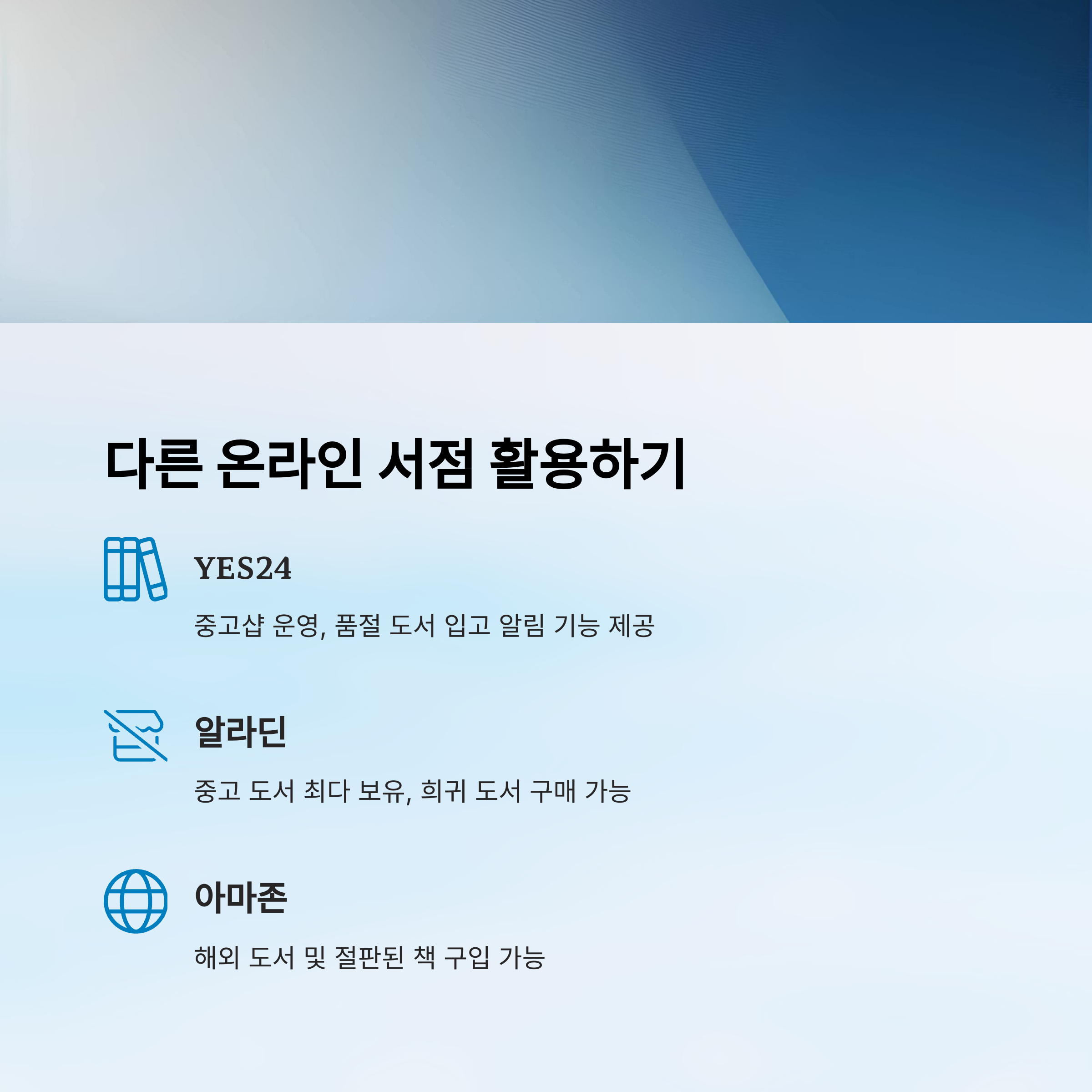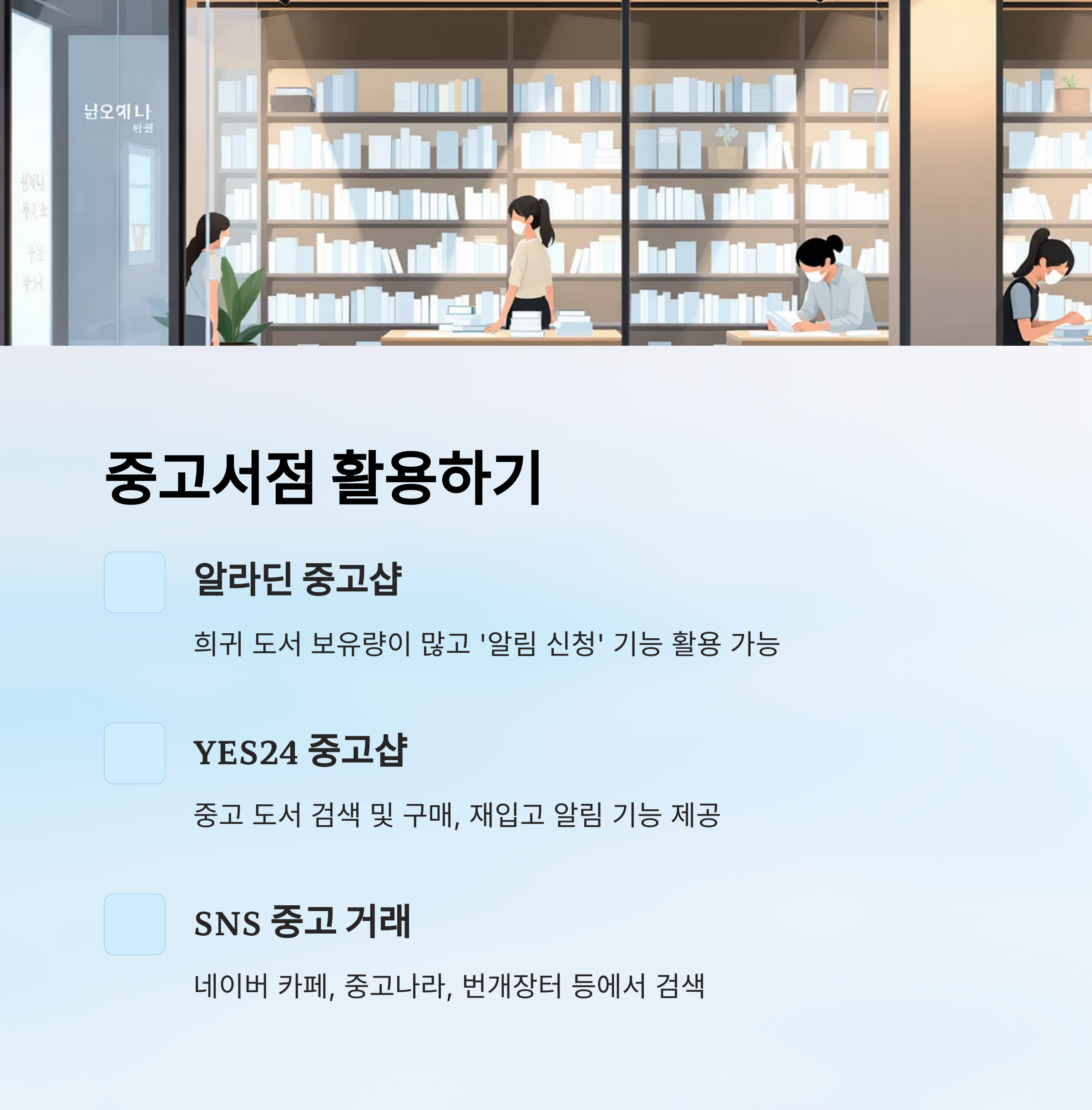 온라인 중고서점에는 예상보다 많은 희귀 도서가 남아 있는 경우가 많고, **SNS 중고 거래나 전자책 버전 구매**도 좋은 대안이 될 수 있어요. ✅