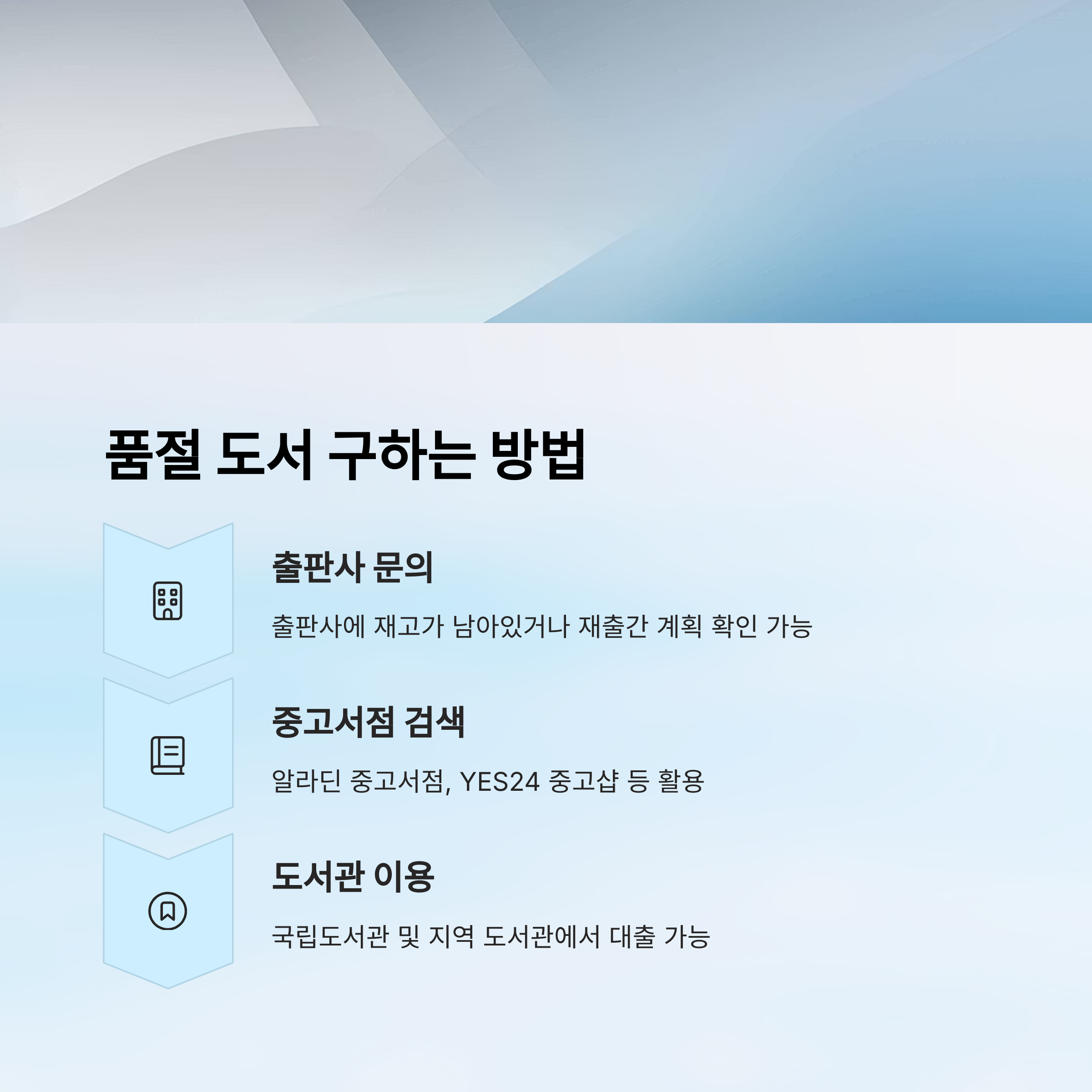 예를 들어, **출판사에 직접 문의하거나 중고서점, 도서관, 해외 서점 등을 활용하면 품절된 책도 찾을 가능성이 높아져요.** 📚