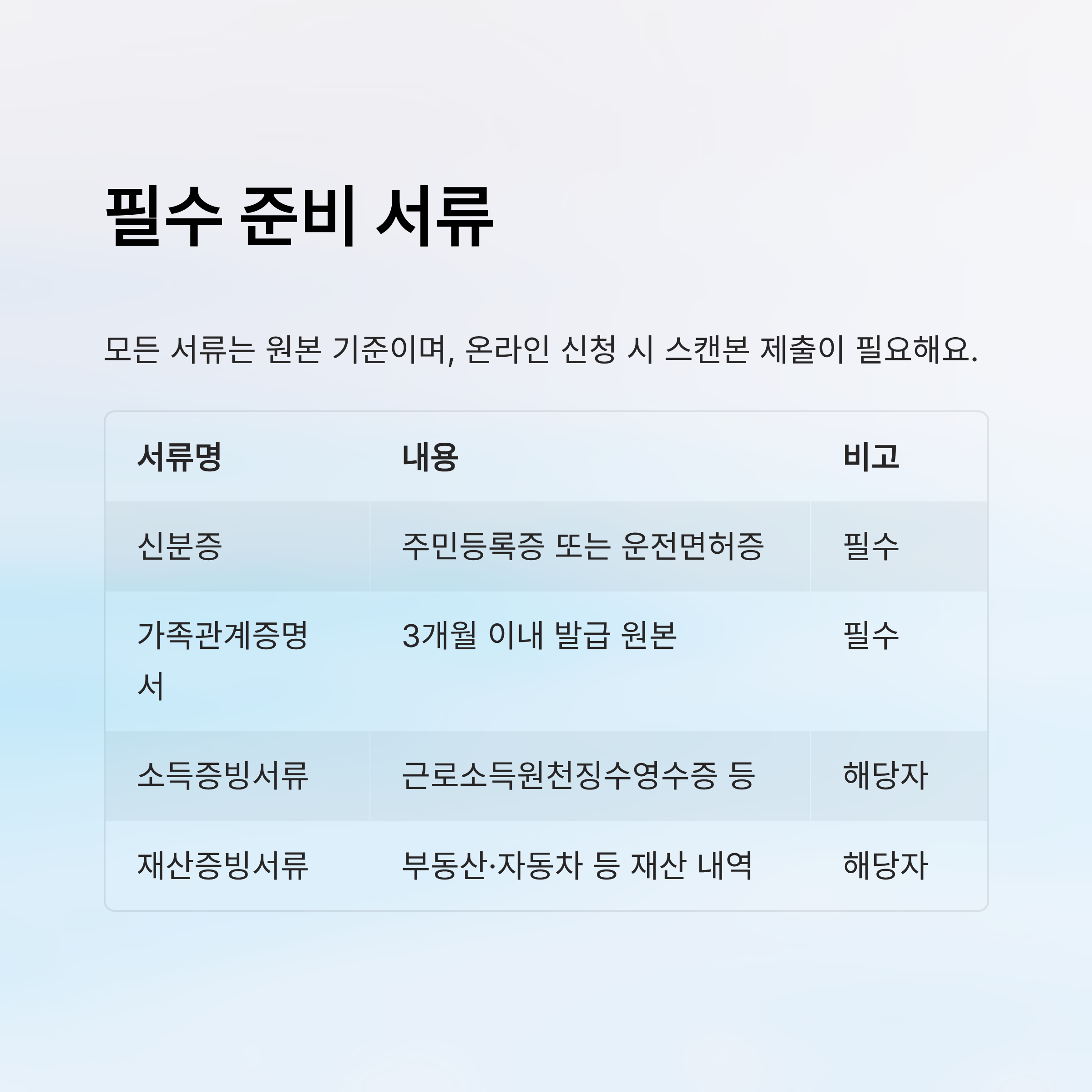모든 서류는 원본 기준이고, 복사본도 함께 준비하면 좋아요. 특히 온라인 신청 시 스캔본 제출이 필요하니 미리 전자파일로 준비해 두는 게 효율적이에요.