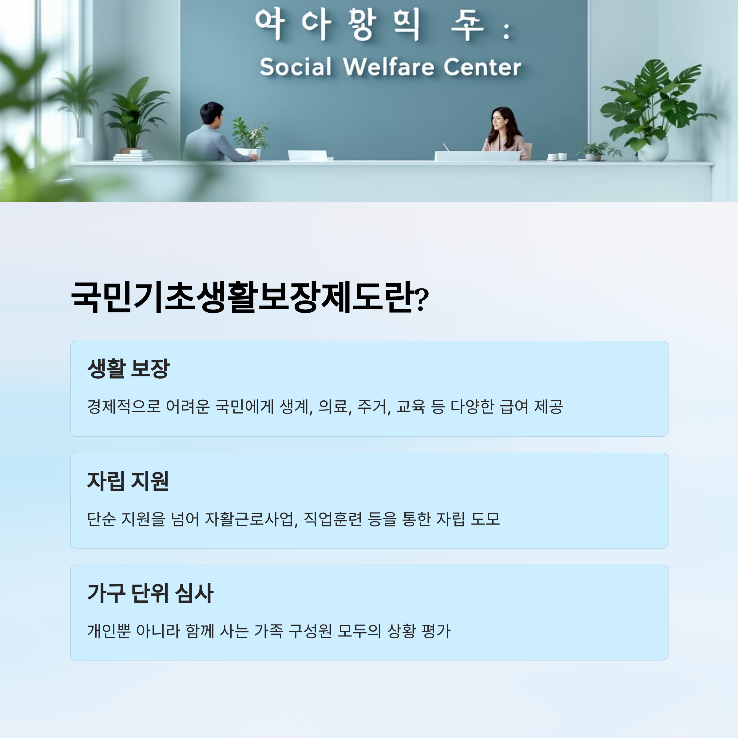 마지막 팁! 📌 조건을 조금 초과하더라도 일부 급여는 받을 수 있는 경우도 있으니, 단념하지 말고 시·군·구청 또는 주민센터에서 상담 받아보는 걸 추천해요. 생각보다 다양한 지원이 준비되어 있답니다.