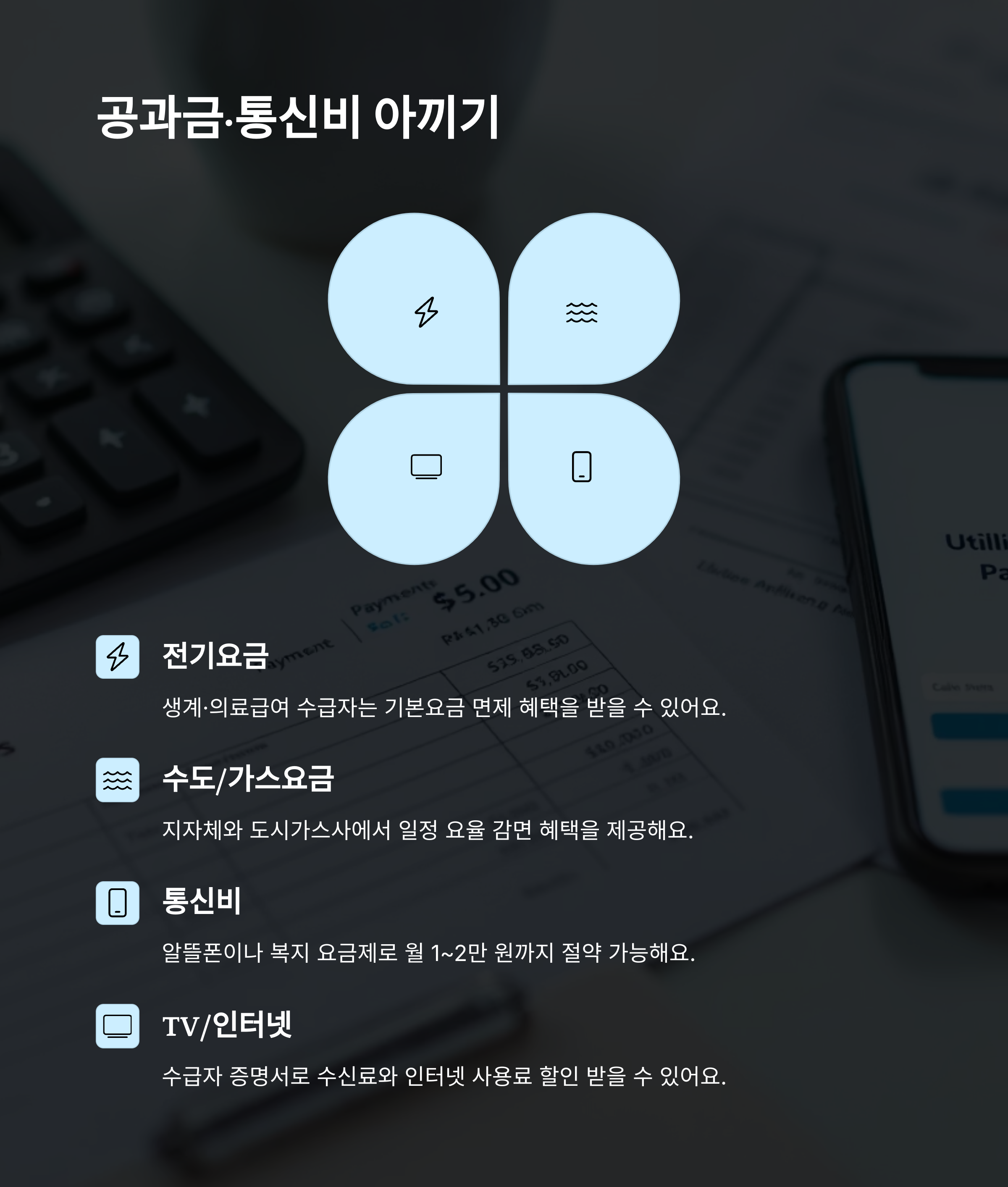 공과금과 통신비는 매달 고정적으로 나가는 돈이에요. 하지만 잘만 활용하면 이 비용도 줄일 수 있어요. 특히 저소득층과 수급자 대상의 요금 감면 제도가 정말 다양하다는 사실, 알고 계셨나요?