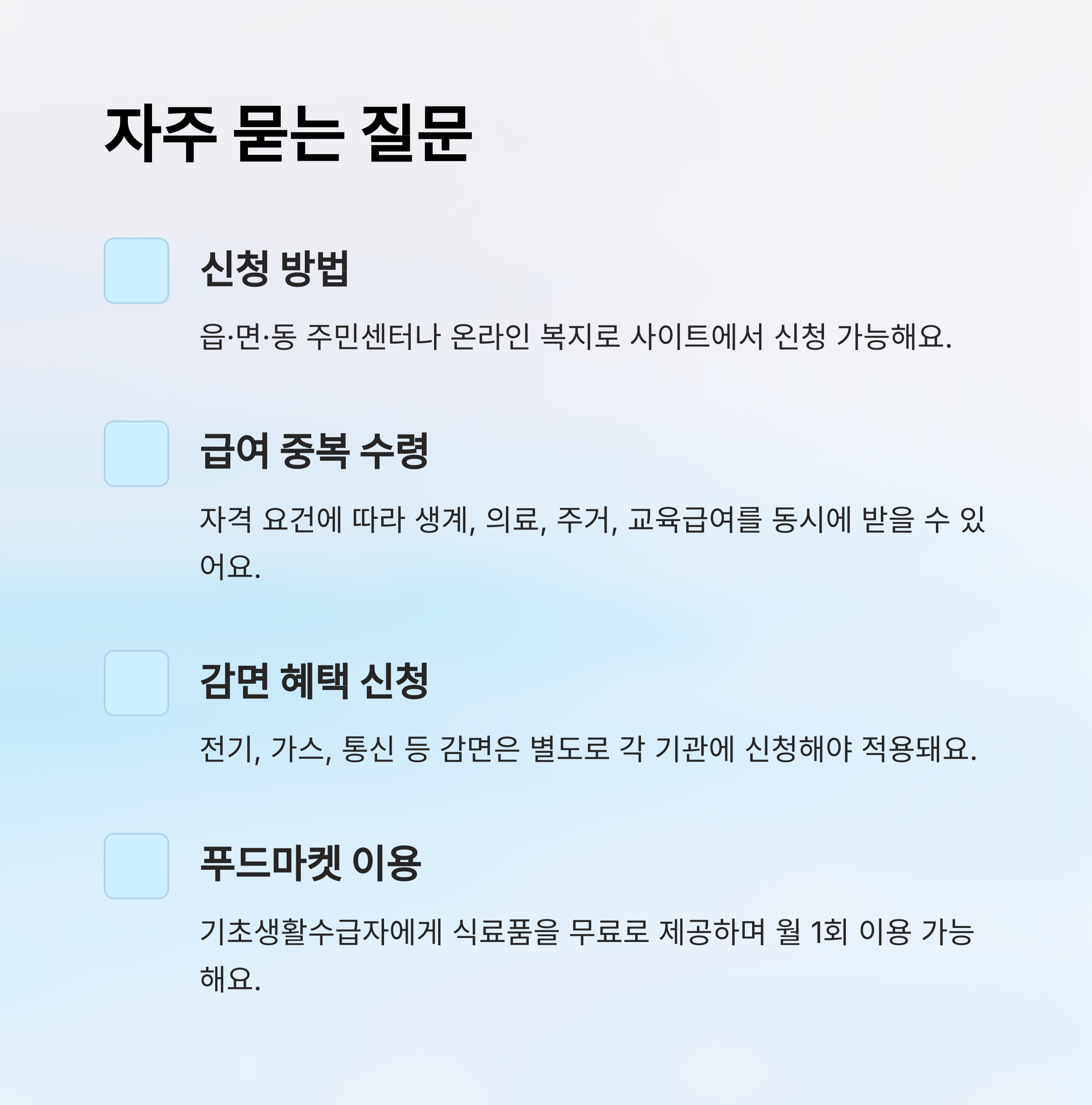 이렇게 보면 국민기초생활보장제도는 단순한 ‘돈 주는 제도’가 아니라 생활 전반을 도와주는 든든한 기반이에요. 지금 어려움을 겪고 있다면 꼭 한번 상담을 받아보는 걸 추천해요 🙌