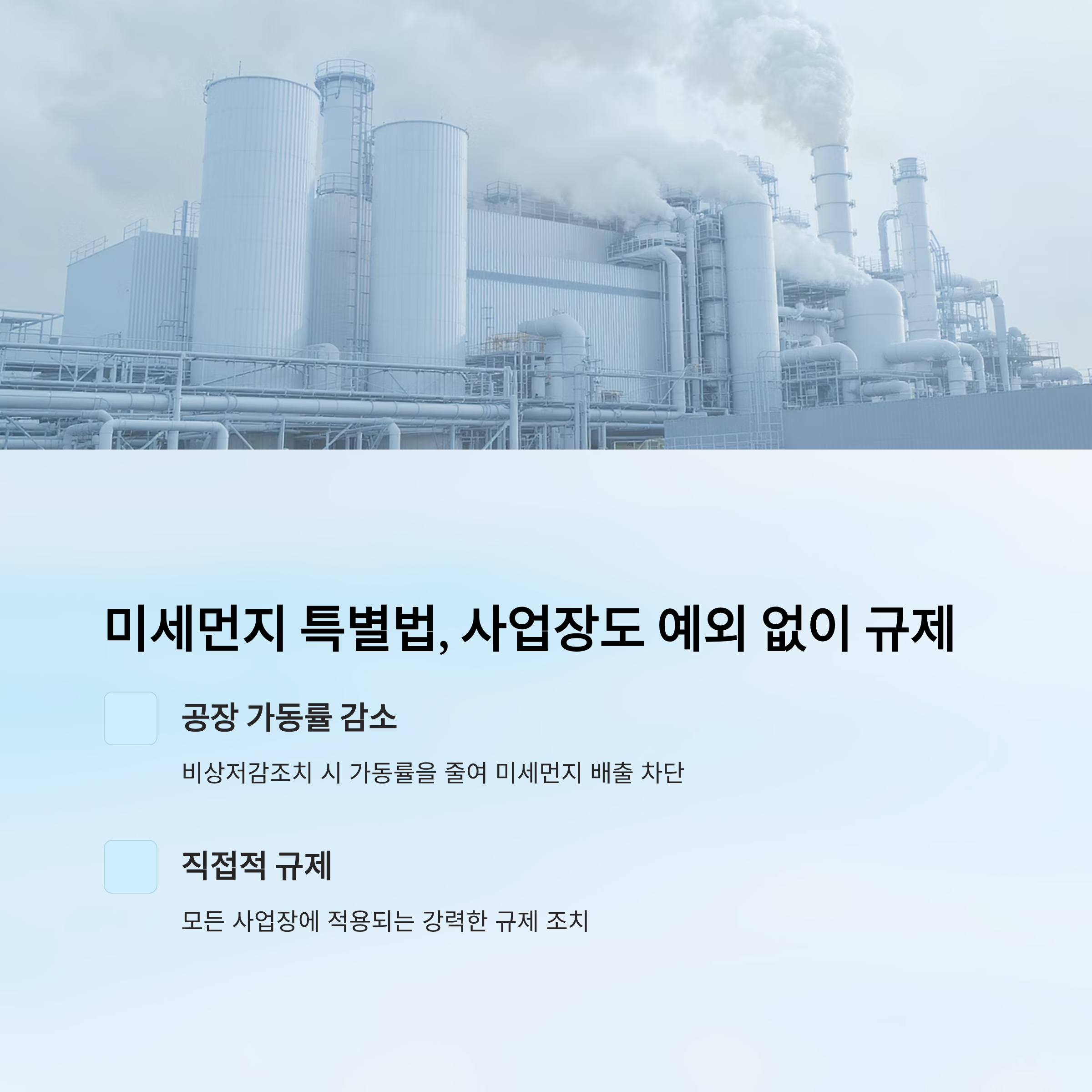 자동차뿐만 아니라, 미세먼지의 주요 원인인 공장도 대상이에요.