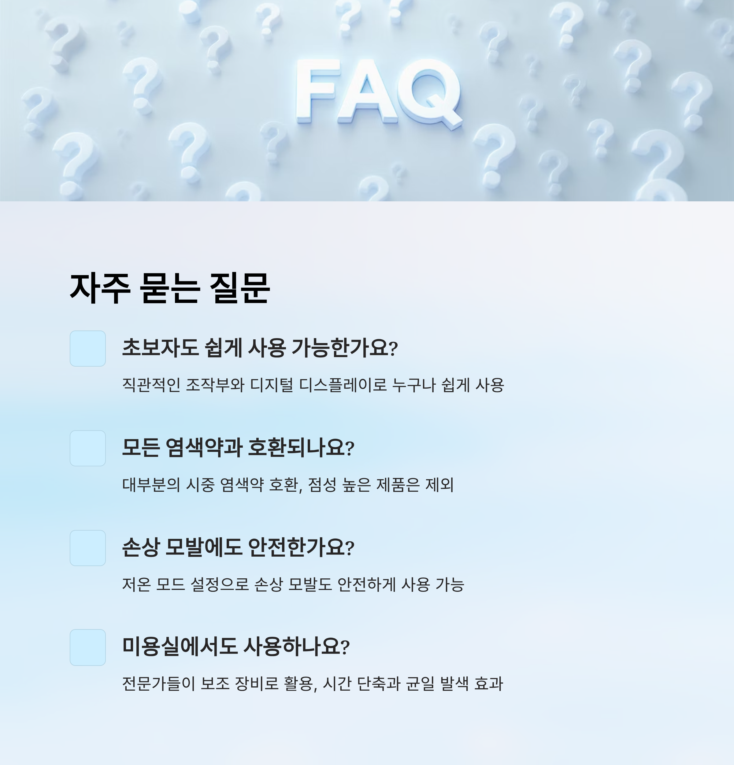 A7. 네, 실제로 보조 장비로 많이 활용돼요. 균일한 발색과 시간 단축 효과 때문에 전문가들도 선호하고 있어요.