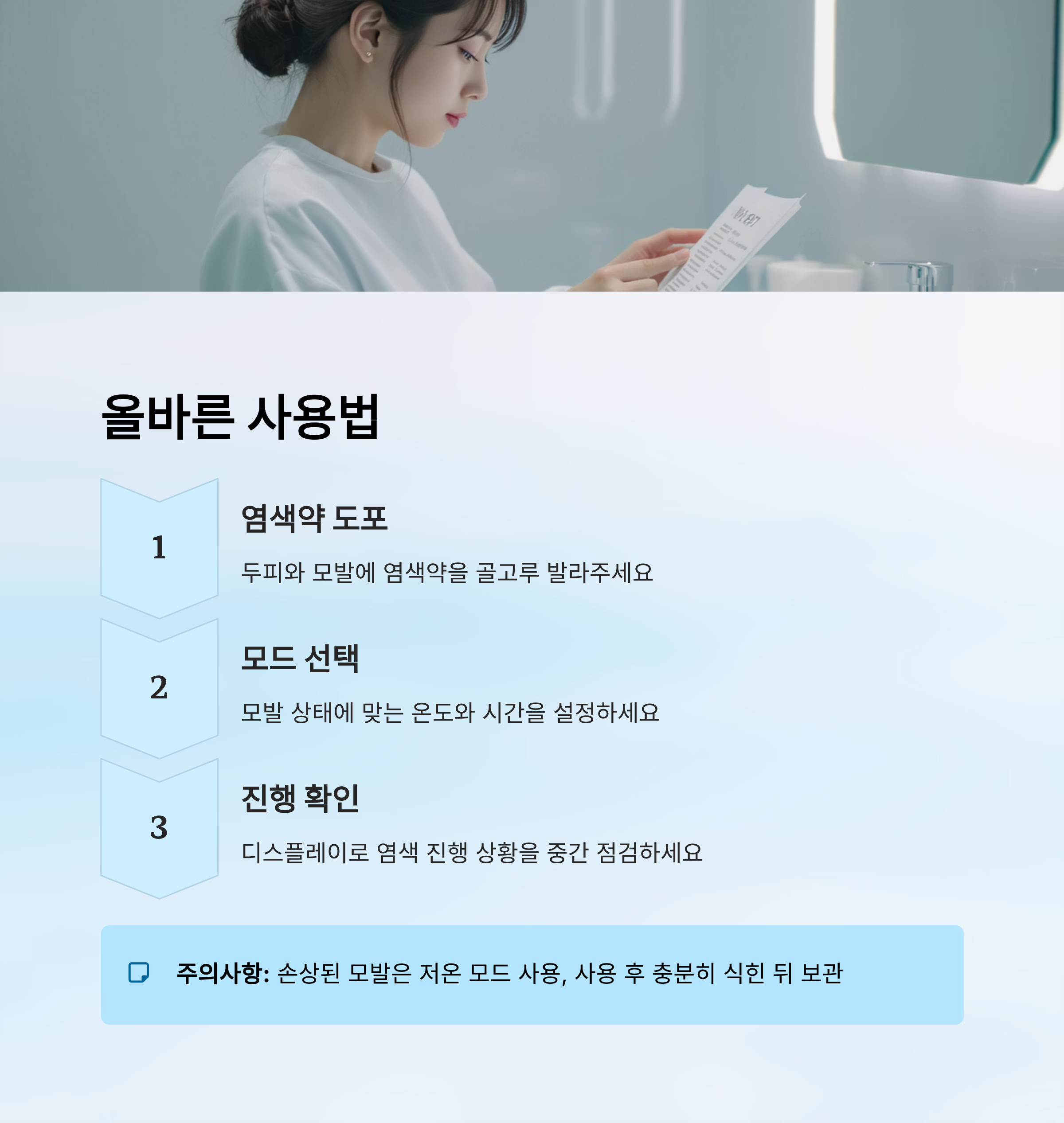 제품 사용 전에 꼭 확인해야 할 것은 모발 상태예요. 손상된 모발은 열에 취약하기 때문에 ‘저온 모드’를 선택하는 것이 좋아요. 반대로 건강한 모발은 표준 모드나 집중 모드를 활용하면 발색이 더 뚜렷해져요. 이런 구체적인 모드 선택은 사용자가 스스로 컨트롤할 수 있다는 점에서 큰 장점이에요. 🙆