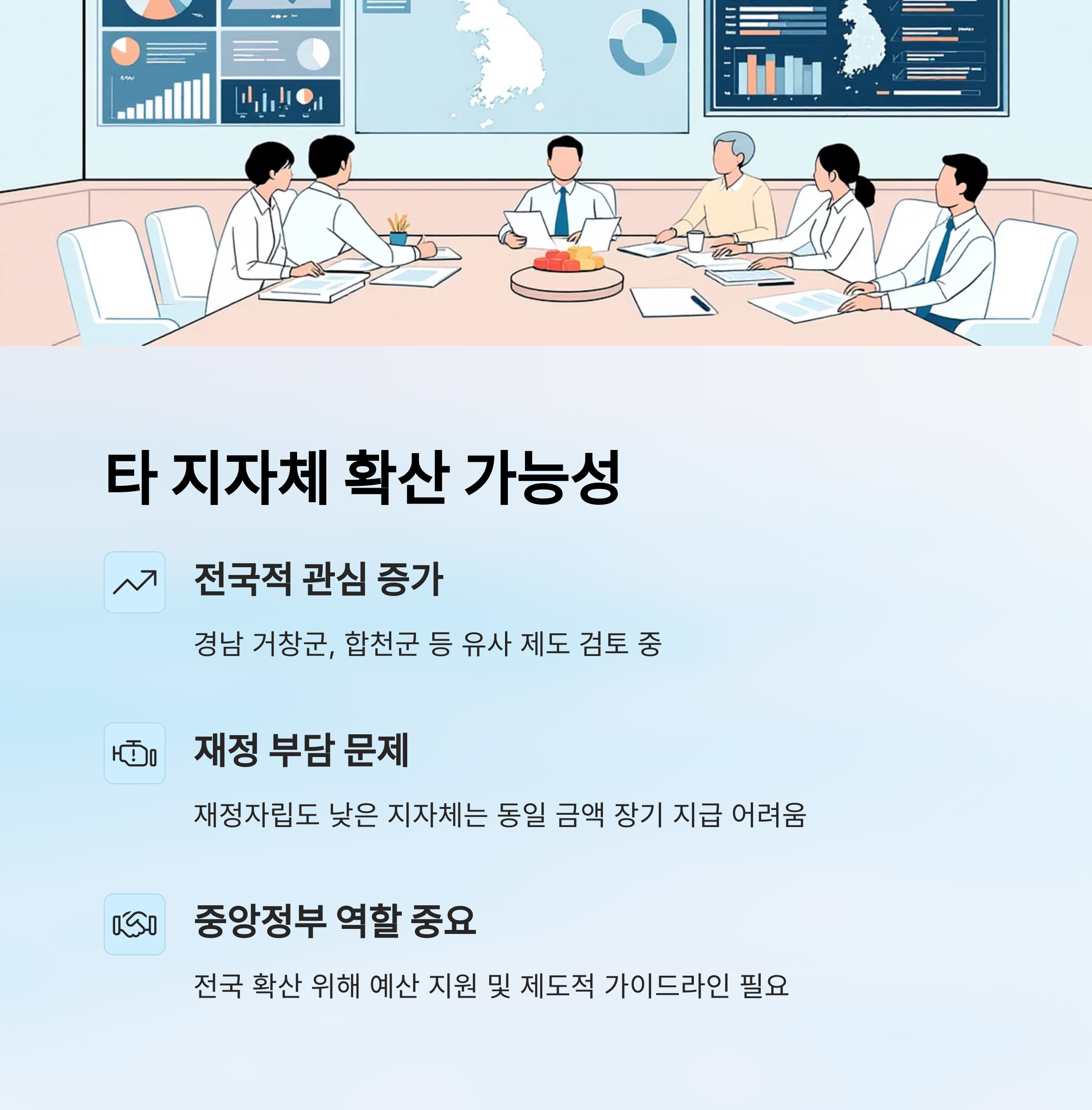 정책 확산의 또 다른 변수는 중앙정부의 역할이에요. 부여군 모델이 다른 지자체로 확산되기 위해선, 일정 부분 중앙정부의 예산 지원이나 제도적 가이드라인이 병행되어야 해요. 현재는 각 지자체 재량에 맡겨져 있지만, 장기적으로는 통합된 기준이 생길 가능성도 있어요.