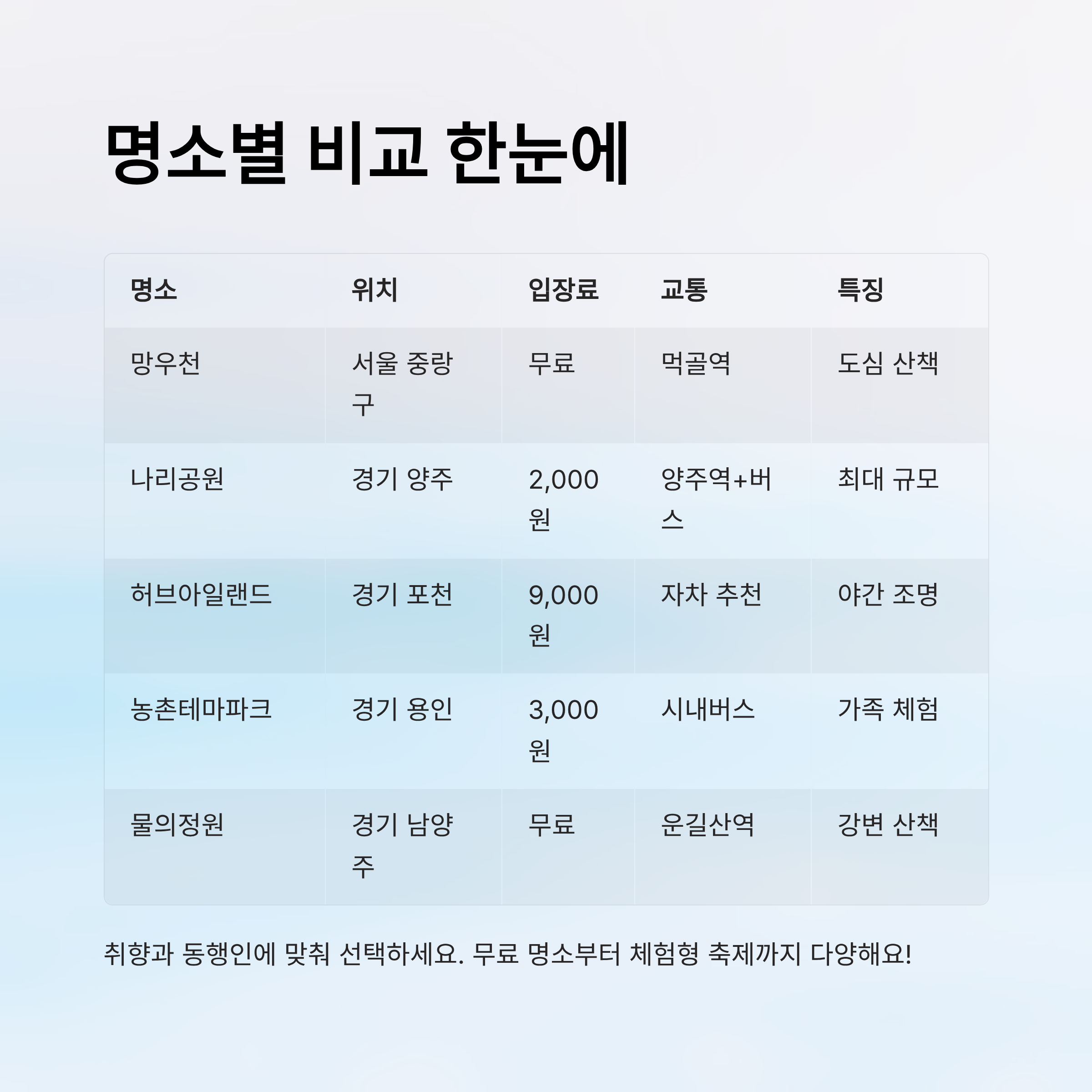 🌷 명소 정보 요약표