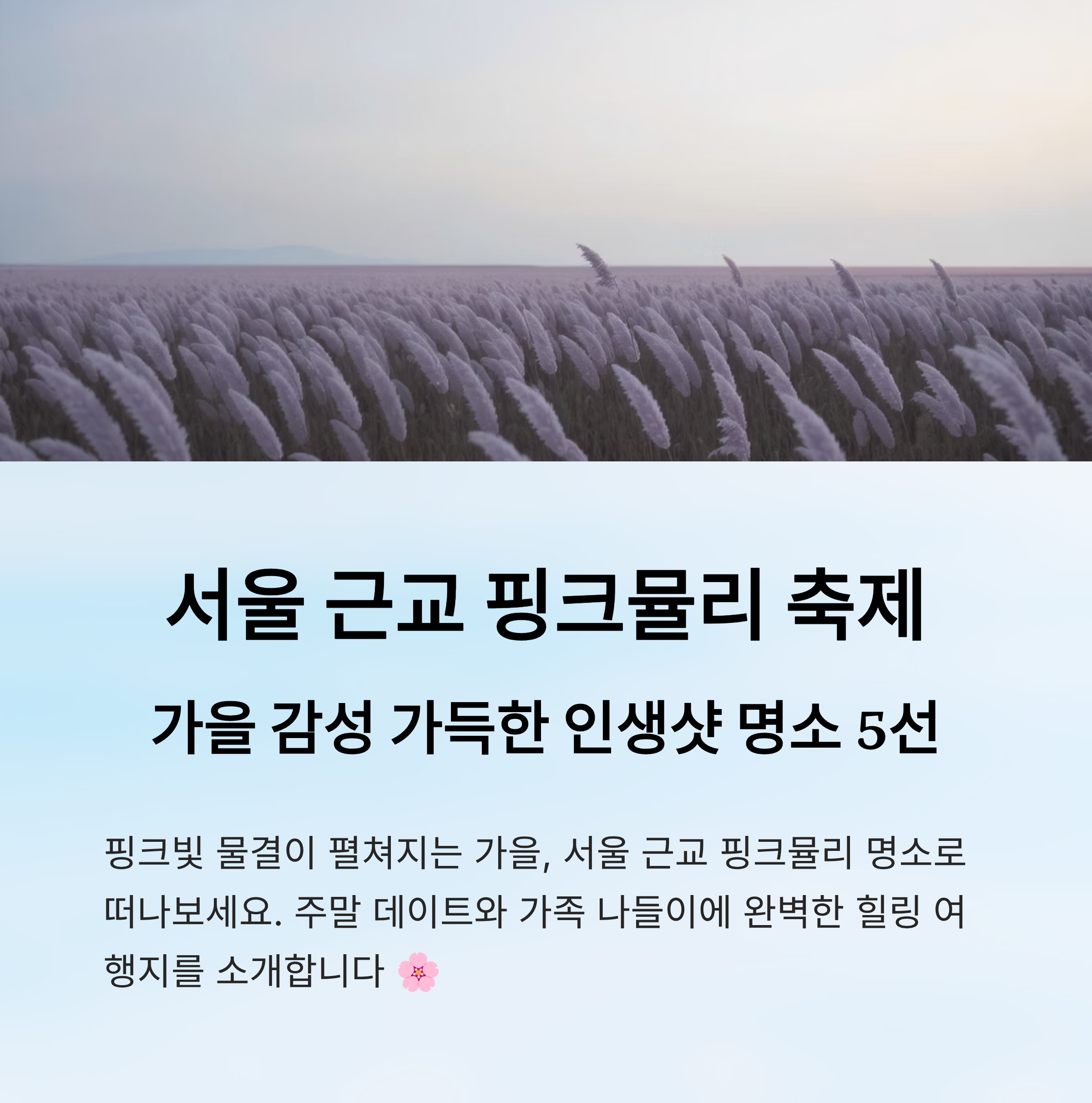 핑크빛 물결이 펼쳐지는 가을, 서울 근교에도 핑크뮬리 명소들이 하나둘 문을 열고 있어요. 수도권에서 가까운 거리라 주말 나들이나 데이트 코스로 부담 없이 다녀오기 좋고, 인생샷 건지기에도 최고의 장소들이죠.