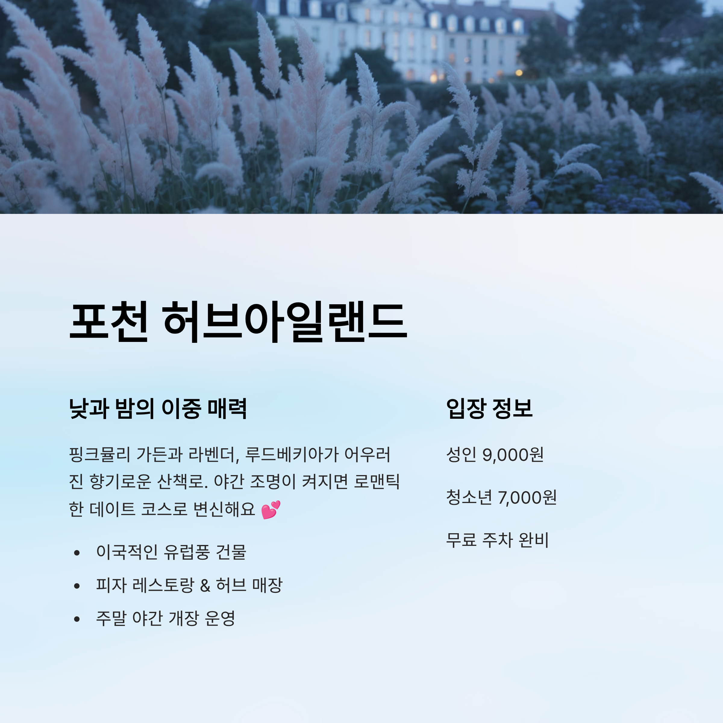 🌼 포천 허브아일랜드 정보 요약표