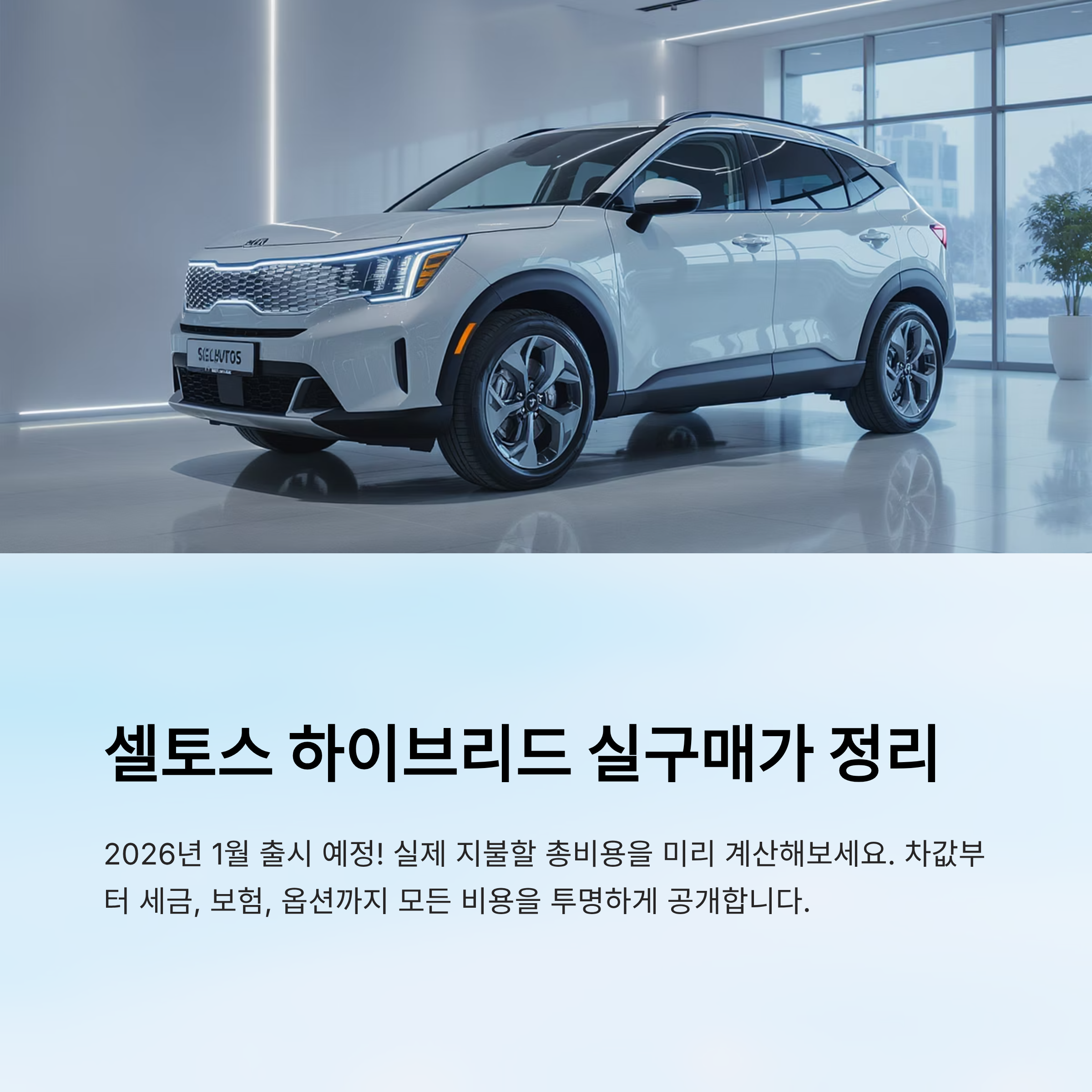 2025년 기준으로 셀토스 하이브리드 출시는 2026년 1월이 유력하다고 거론돼요. 출시 전이라 공식가가 확정된 건 아니지만, 소형 하이브리드 SUV 수요가 커지는 흐름과 셀토스의 시장 포지션을 감안하면 실구매가를 미리 그려보는 게 예산 계획에 큰 도움이 돼요. 특히 초기에 물량이 집중될 가능성이 있어 옵션 구성과 금융 계획을 선제적으로 정리하는 전략이 유리해요.