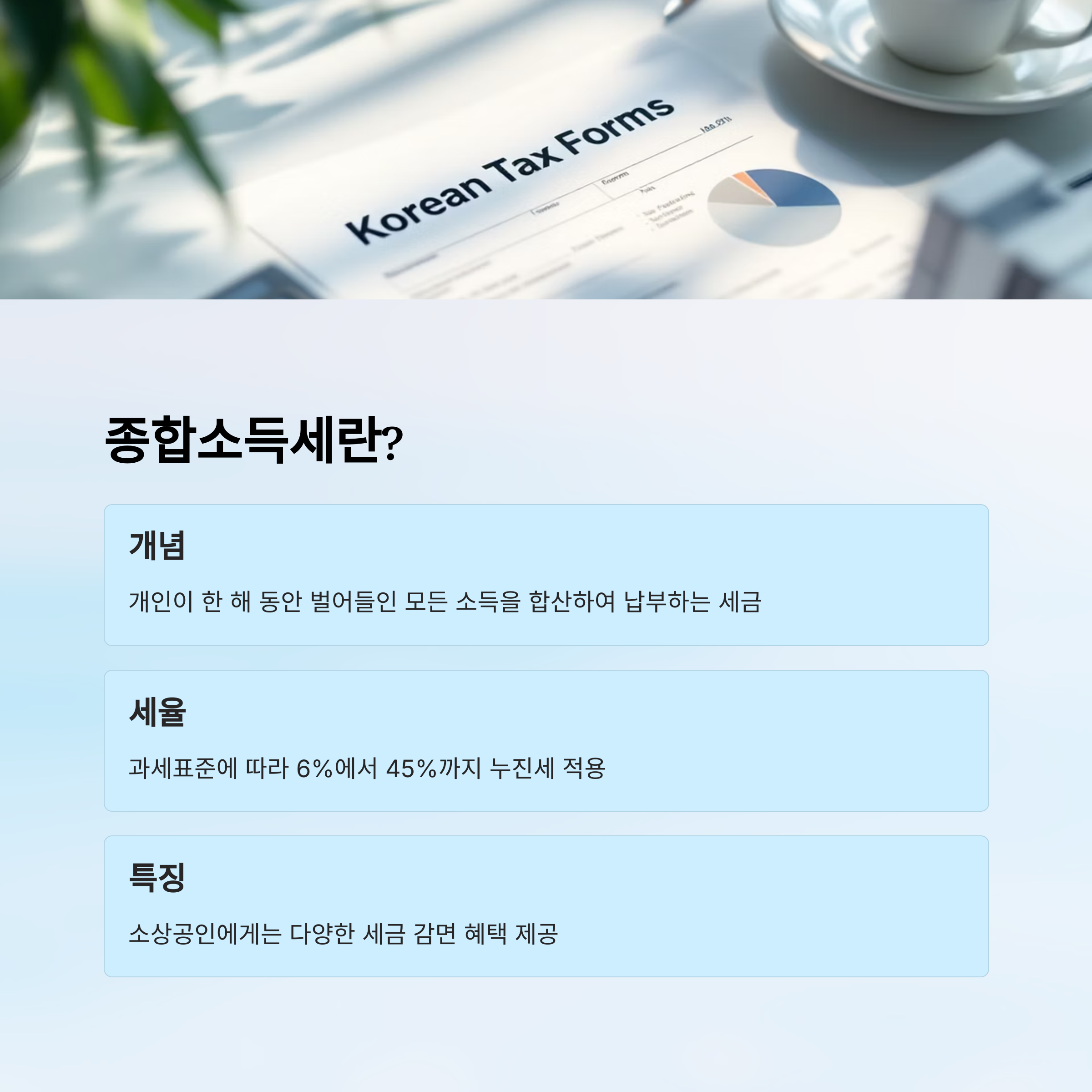 종합소득세는 개인이 한 해 동안 벌어들인 모든 소득을 합산하여 납부하는 세금이에요. 이는 사업소득뿐만 아니라 이자, 배당, 연금, 근로소득까지 포함되죠. 소상공인의 경우, 주로 사업소득이 해당돼요.