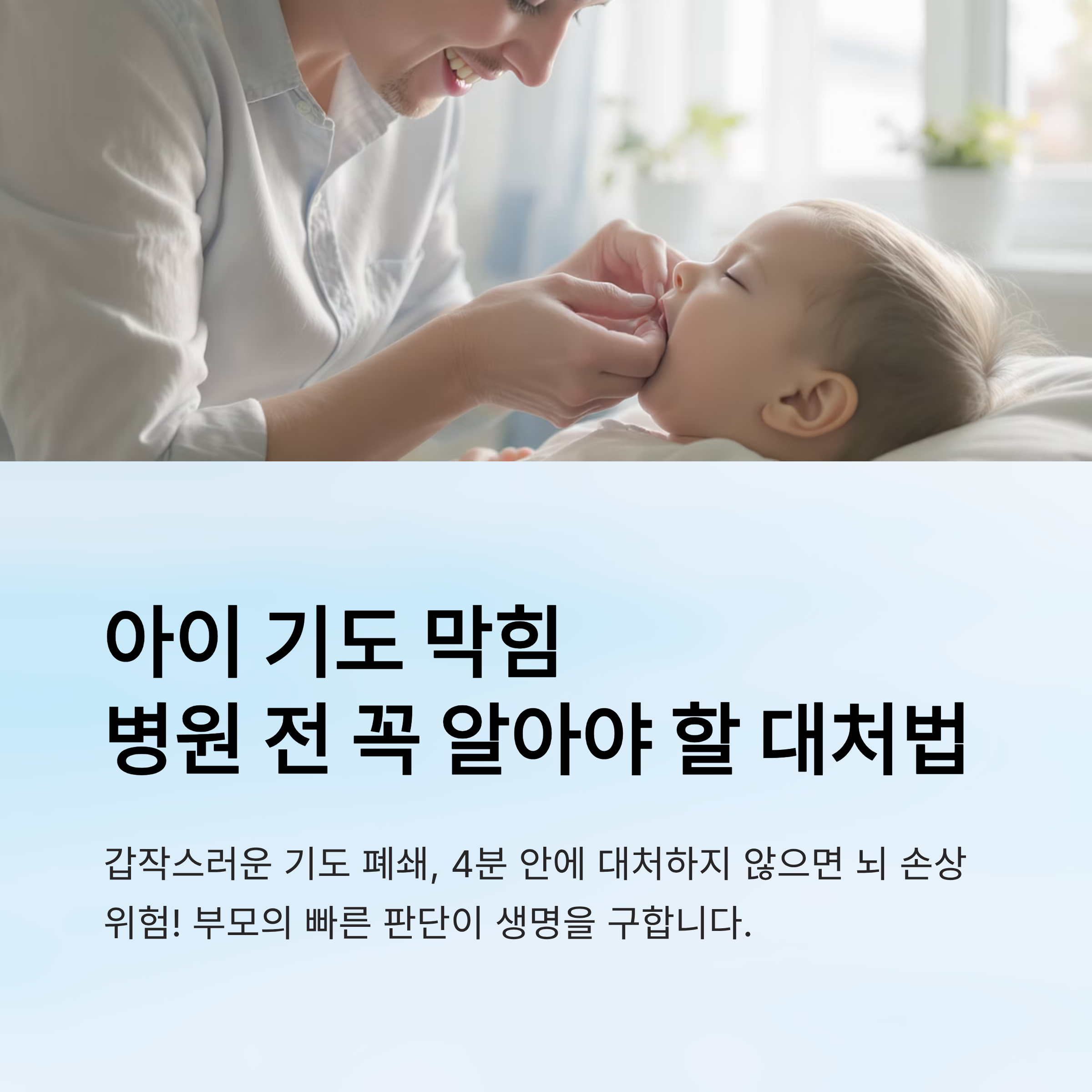 ‘골든타임’이라는 말, 들어보셨죠? 기도폐쇄는 4분 안에 산소 공급이 되지 않으면 뇌 손상이 올 수 있어요. 아이의 생명은 부모의 침착한 판단과 빠른 대응에 달려 있답니다. 이 글에서는 119 신고부터 하임리히법, 상황별 응급처치까지, 병원에 도착하기 전 꼭 알아야 할 모든 대처법을 소개할게요.