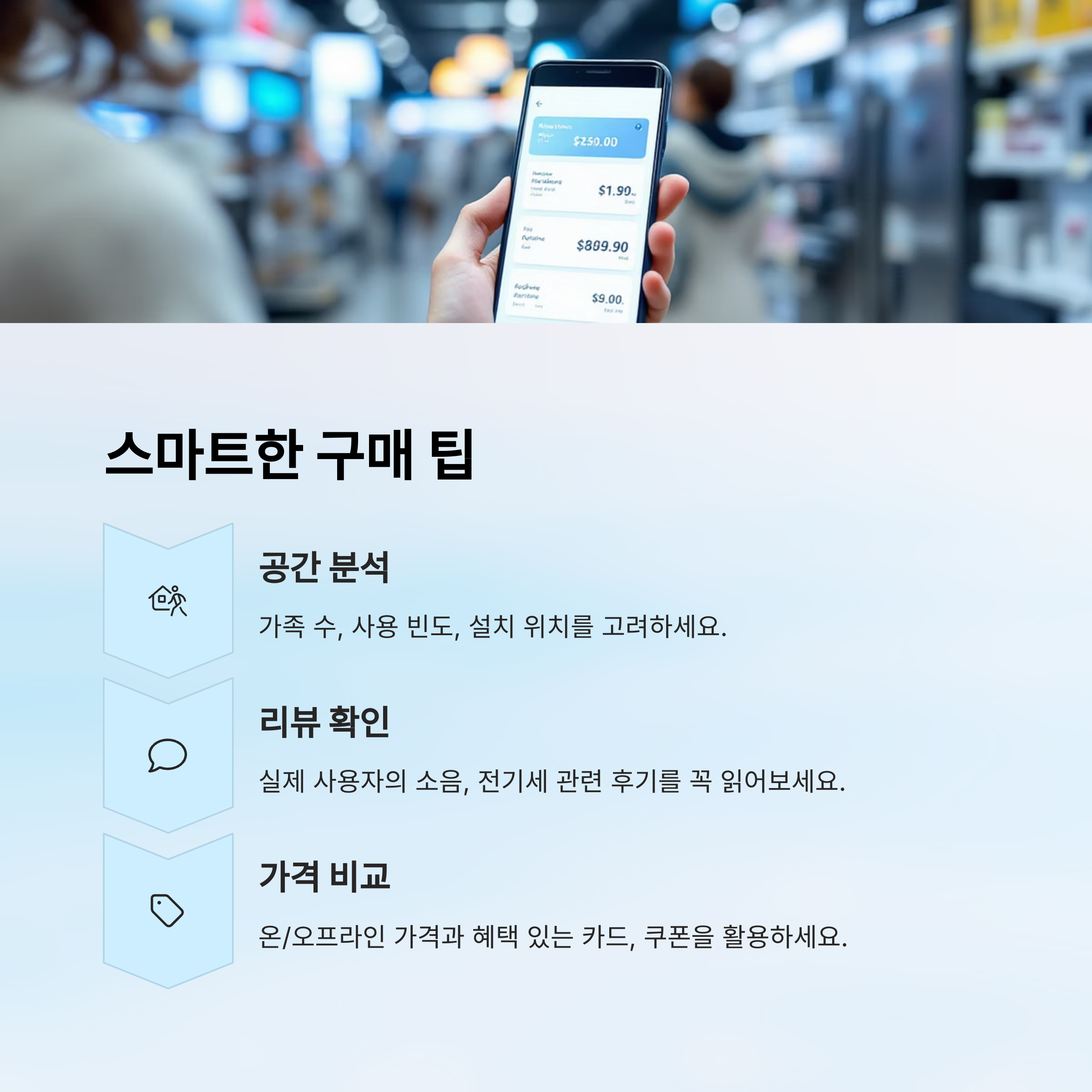 온라인 쇼핑몰의 리뷰는 정말 금쪽같은 정보예요. 특히 “소음이 크다”, “전기세가 많이 나왔다” 같은 후기들은 제품 성능보다 더 현실적인 기준이 되죠. 구매 전에는 꼭 비교 사이트나 전자제품 커뮤니티도 확인해보는 걸 추천해요.
