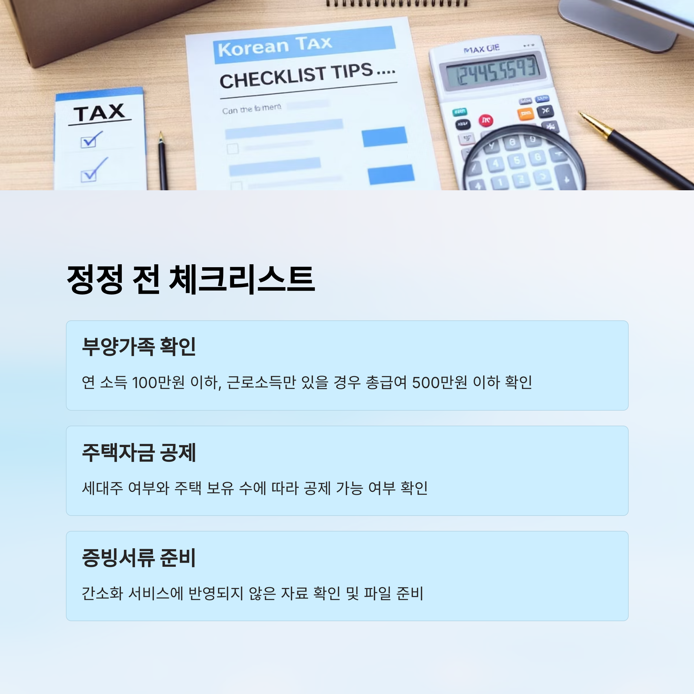 | 증빙서류 첨부 | PDF, 이미지 등으로 준비 | 홈택스 첨부 필수 |