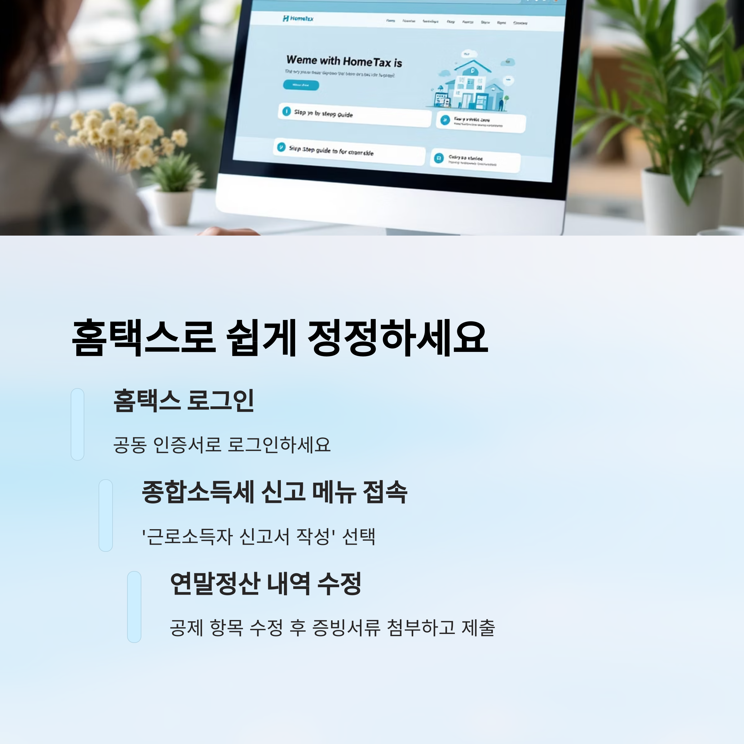 연말정산에서 실수가 발생했다면 가장 먼저 해야 할 일은 국세청 홈택스를 통해 정정 신고를 하는 거예요. 홈택스에서는 근로소득자도 종합소득세 신고 메뉴를 통해 아주 쉽게 수정 신고를 진행할 수 있어요. 이 과정에서 별도의 세무 지식이 없어도 걱정하지 않아도 돼요. 👨💻