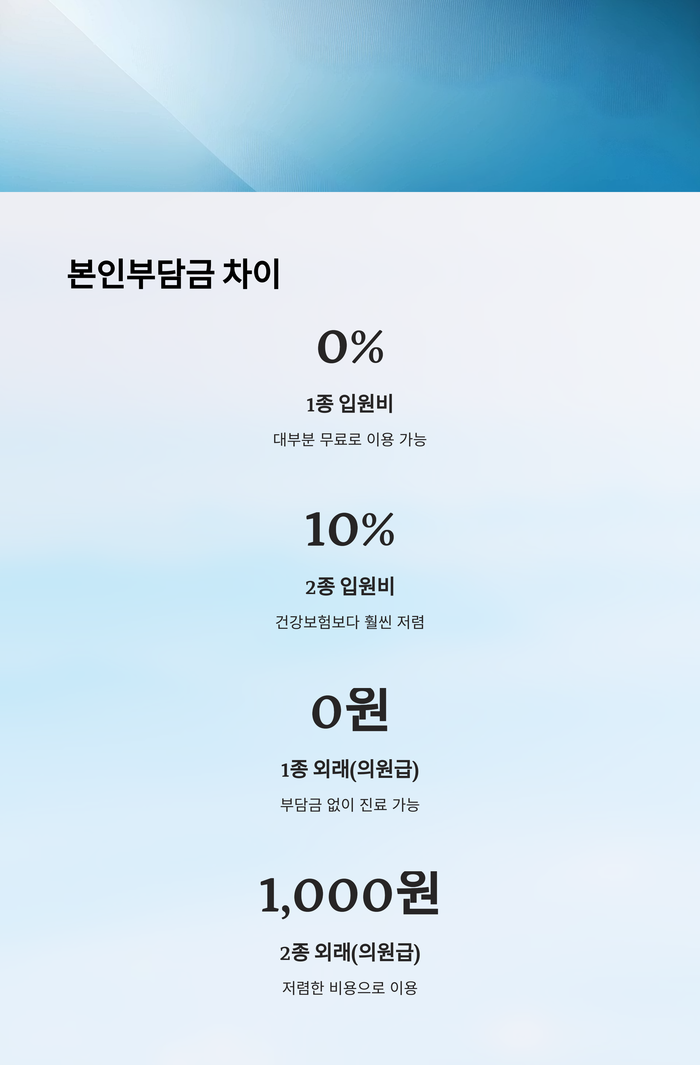 | 외래 진료 | 본인 부담 거의 없음 | 본인 부담금 일부 있음 |