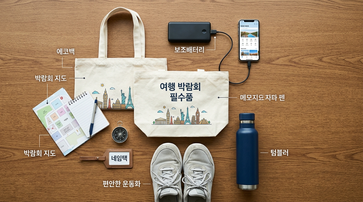 처음 가시는 분들은 무엇을 챙겨야 할지 막막하실 텐데요. 제가 완벽하게 정리해 드릴게요. 이것만 챙기면 박람회장에서 프로 여행러 소리 들으실 수 있습니다! 😎