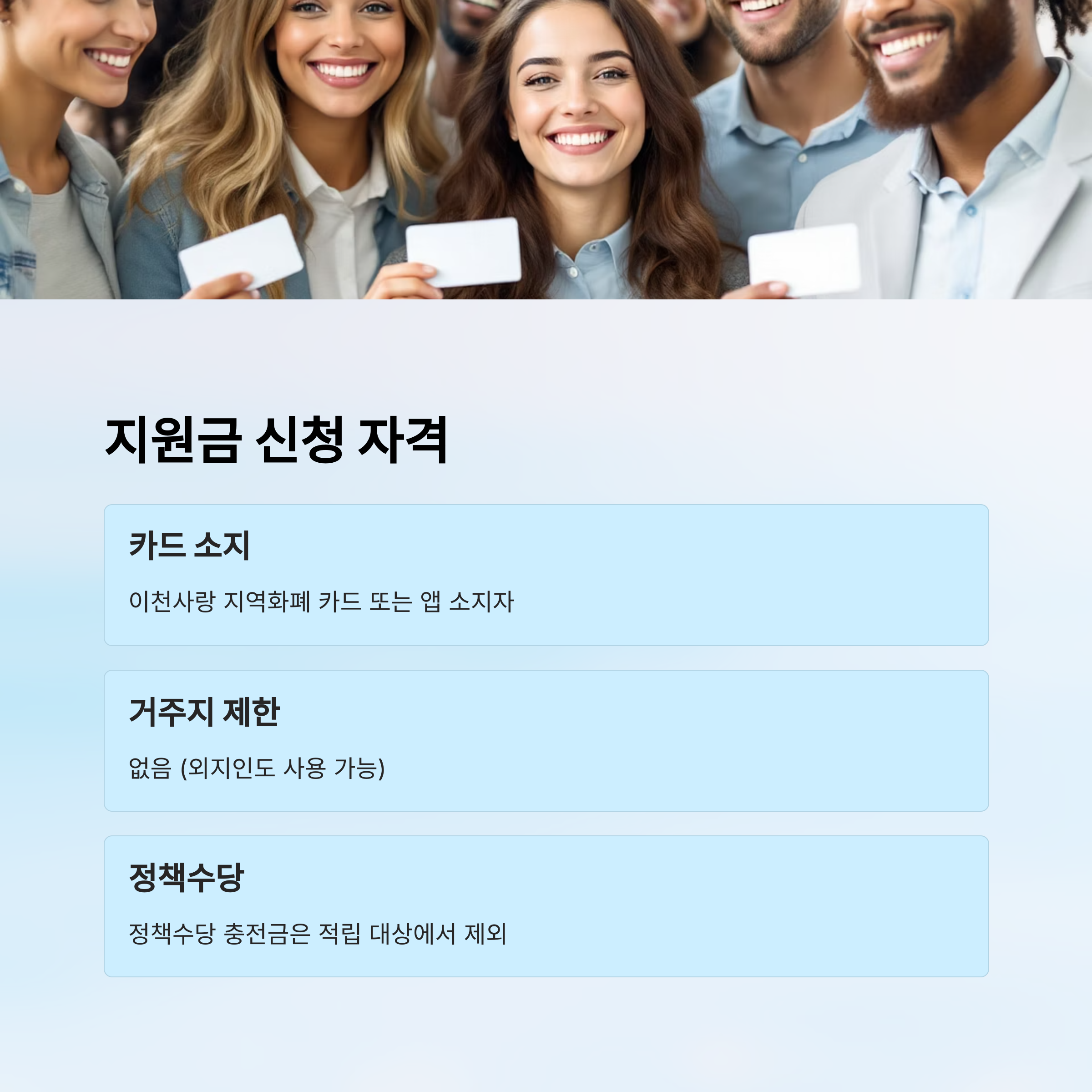 이천사랑 지역화폐 소비지원금 신청 자격은 꽤 넉넉해서 많은 분들이 쉽게 신청할 수 있어요! 🎉