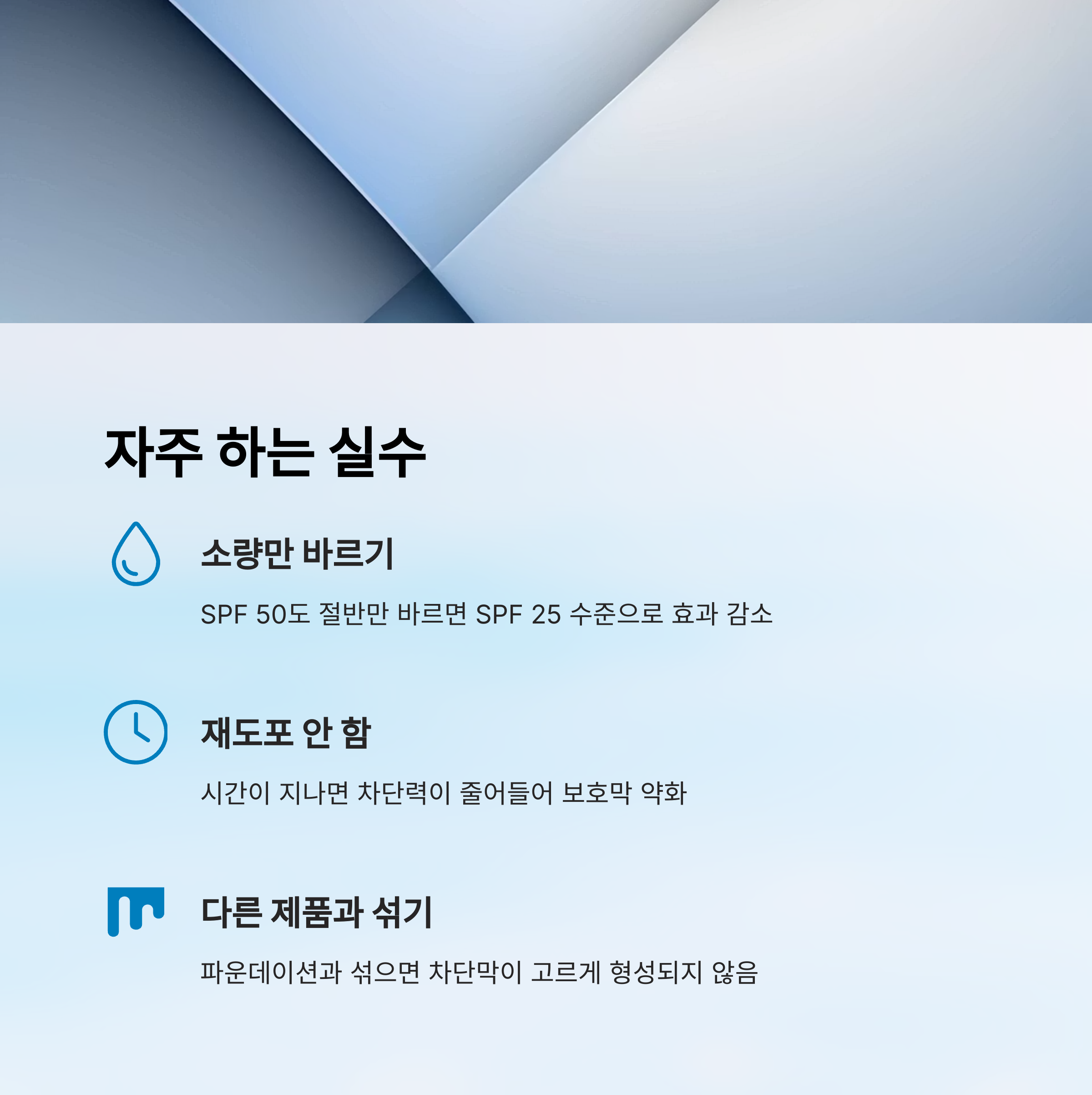 | 적은 양만 바르기 | 차단력 급감 | 권장량 이상 도포 |