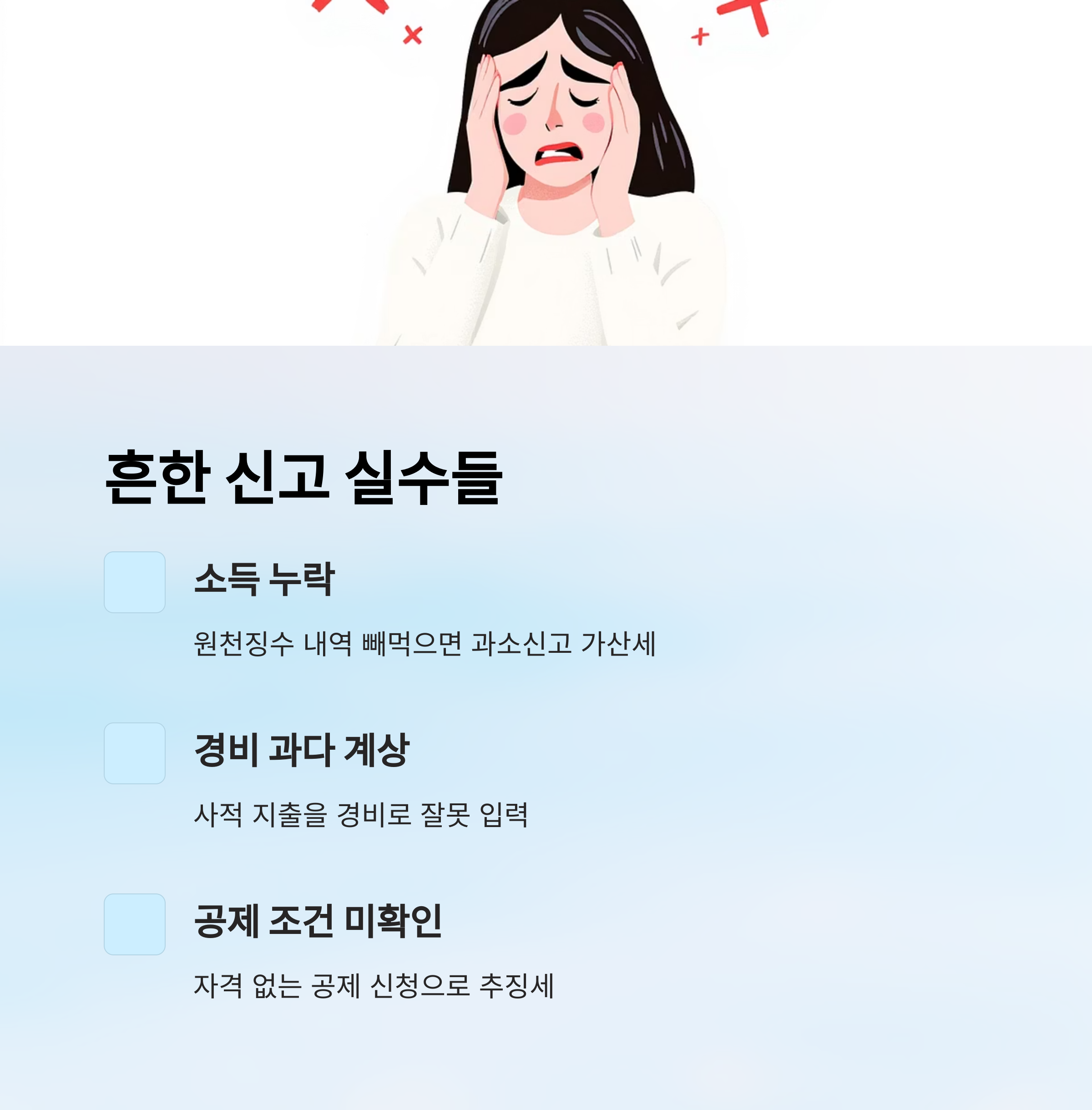 종합소득세 신고를 할 때는 ‘실수’가 치명적인 결과를 가져올 수 있어요. 단순한 착오라도 금전적 불이익이나 세무조사로 이어질 수 있으니 꼭 조심해야 해요. 특히 신고를 직접 하는 경우 실수하기 쉬운 부분이 몇 가지 있어요.