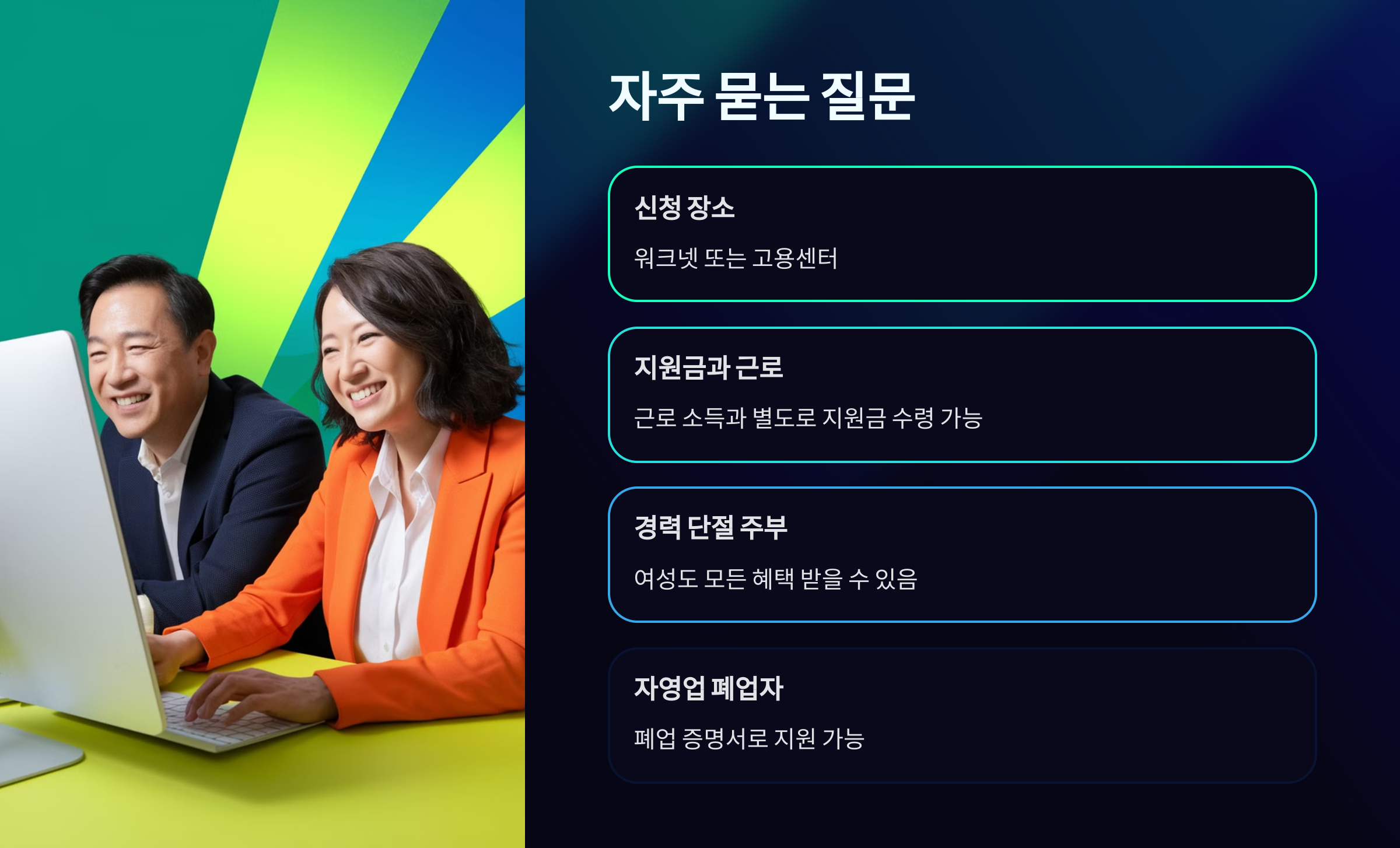 | 1. 고용센터 상담 적극 활용 | 지원금 종류와 신청 방법을 상세히 안내받을 수 있어요. |