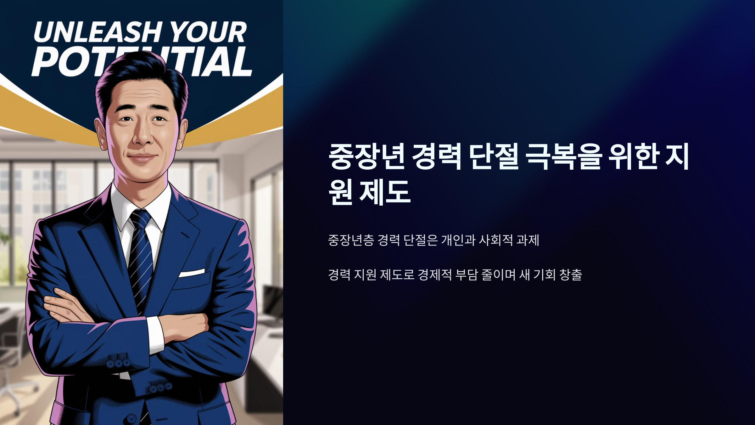 중장년층의 경력 단절 문제는 개인뿐만 아니라 사회적으로도 큰 과제예요. 하지만 경력 지원 제도를 통해 이러한 어려움을 충분히 극복할 수 있어요! 😊
