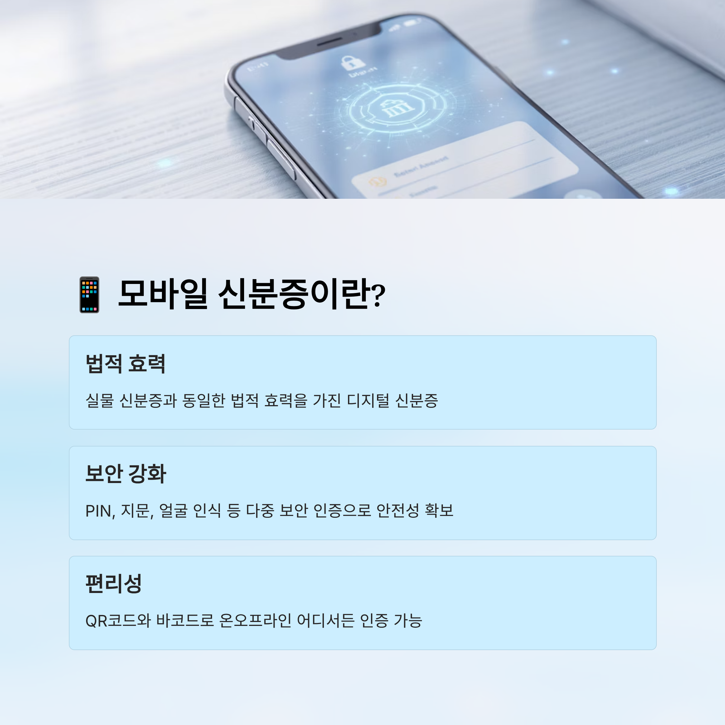 바일 신분증은 스마트폰에 발급받아 실물 신분증과 동일한 법적 효력을 가지는 디지털 형태의 신분증이에요. 기존에는 지갑 속에 주민등록증이나 운전면허증을 항상 챙겨야 했지만, 이제는 스마트폰만 있으면 다양한 인증을 간편하게 처리할 수 있어요. 이 점이 가장 큰 변화라고 할 수 있답니다.