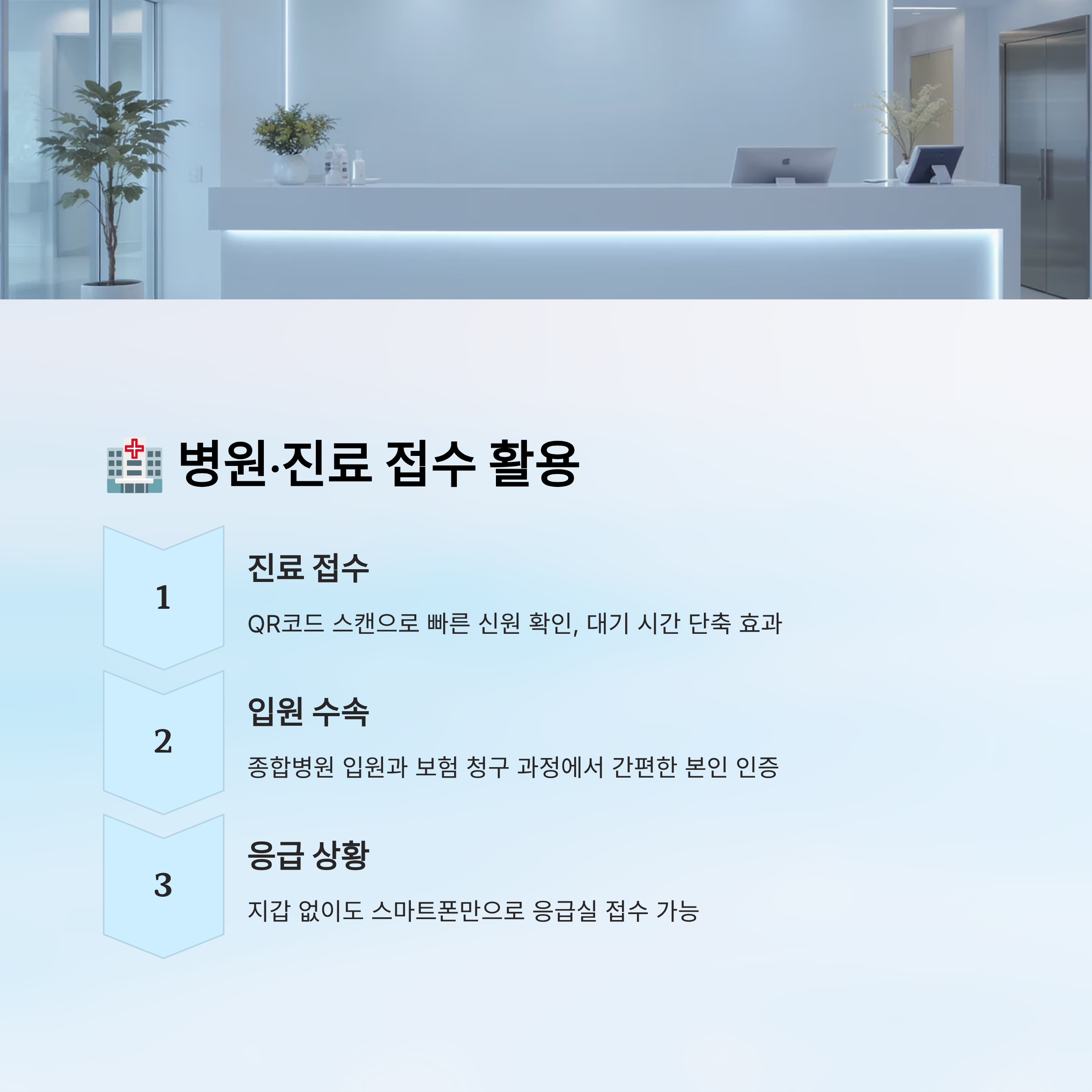 병원 접수 과정에서는 보통 이름과 생년월일을 확인한 후 신분증을 요구하는데, 이때 모바일 신분증 앱을 열고 QR코드를 보여주거나 화면을 제시하면 돼요. 의료진은 해당 화면을 스캔하거나 확인해서 바로 신원 확인을 마칠 수 있죠. 덕분에 긴 줄에 서 있더라도 접수 속도가 빨라지는 장점이 있어요.