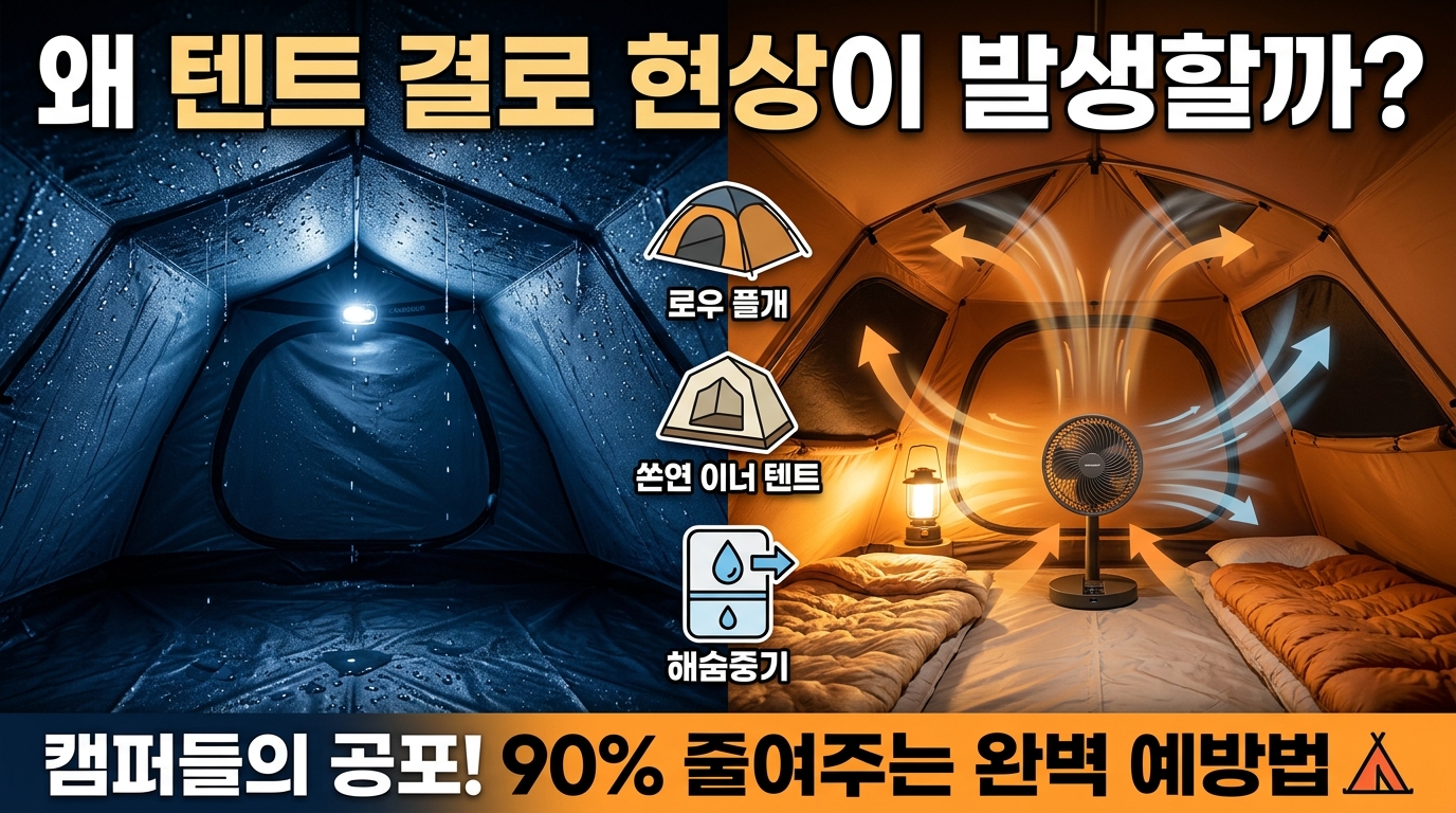 안녕하세요! 캠핑의 낭만을 사랑하는 여러분 😊 혹시 어젯밤, 텐트 안에서 자다가 얼굴에 차가운 물방울이 떨어져 잠에서 깨신 적 없으신가요? "어? 비도 안 오는데 왜 물이 새지?" 하고 당황하셨다면, 그것이 바로 캠핑족들의 영원한 숙제인 '결로 현상'입니다. 저도 초보 캠퍼 시절에는 텐트가 불량인 줄 알고 업체에 항의 전화를 하려고 했던 웃픈 기억이 나네요. 하지만 결로는 단순한 물기가 아닙니다. 이를 방치하면 값비싼 텐트가 상하는 것은 물론, 우리 아이들의 호흡기 건강에도 치명적인 곰팡이의 온상이 될 수 있거든요. 오늘 제가 그 고민을 깔끔하게 해결해 드릴게요! ⛺