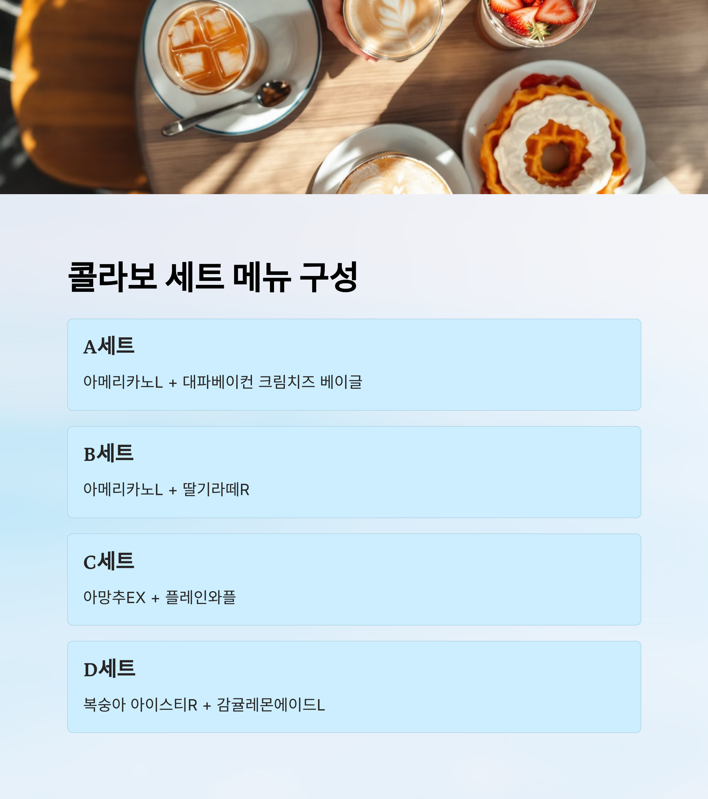 | 매장 | 아메리카노 L + 크림치즈 베이글 | 2매 (랜덤) |