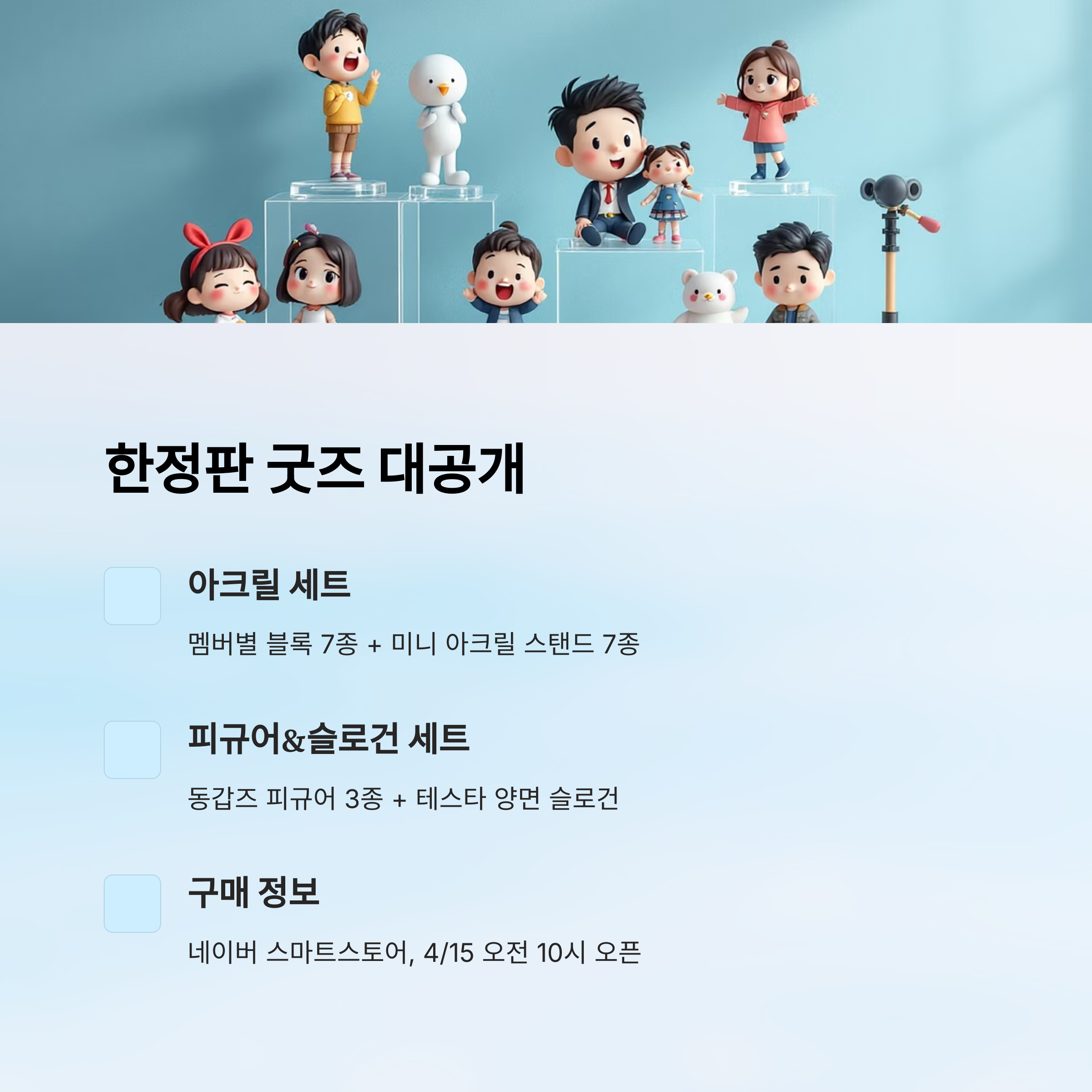 굿즈는 모두 네이버 스마트스토어에서만 구매 가능하며, 한정 수량이기 때문에 빠르게 품절될 수 있어요. 알림 설정하고 미리 준비해두는 게 좋아요! 🔔