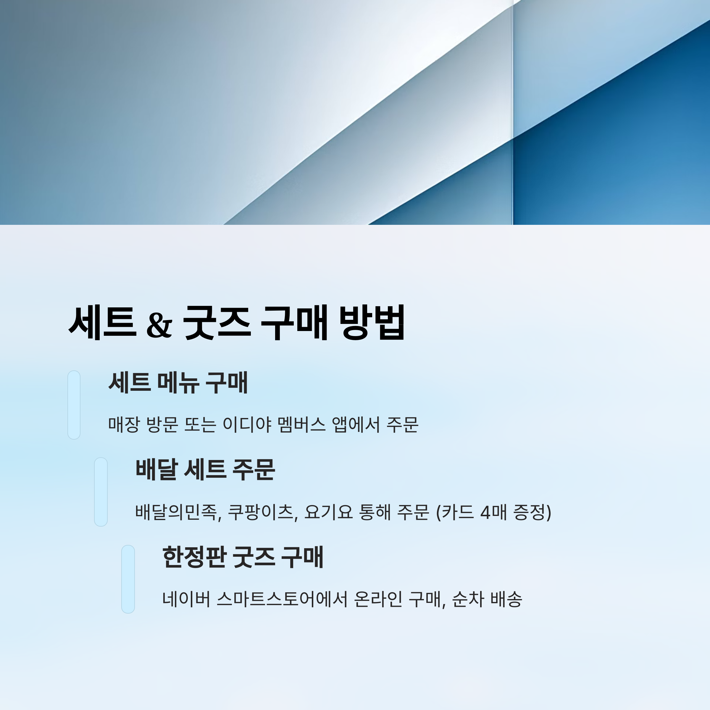 이디야 데못죽 세트와 굿즈는 매장 방문과 배달 앱, 그리고 스마트스토어를 통해 구매할 수 있어요. 구매 방식이 다양해서 나에게 맞는 방법을 선택할 수 있다는 게 장점이에요!