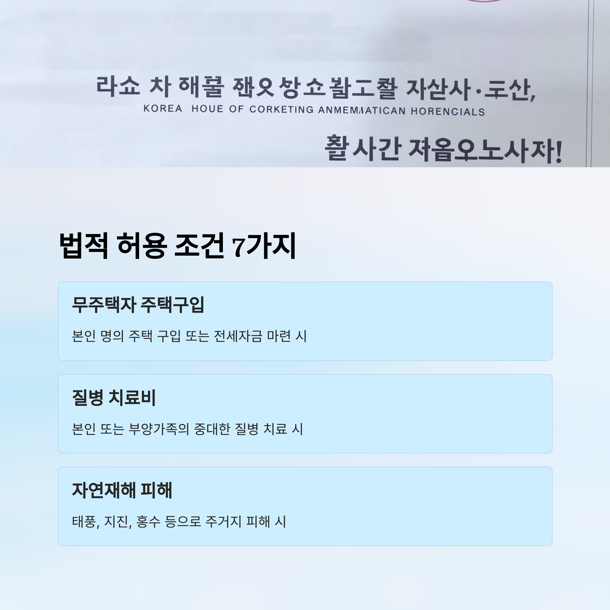 | 대표 사유 | 주택 구입, 질병 치료, 자연재해 등 |