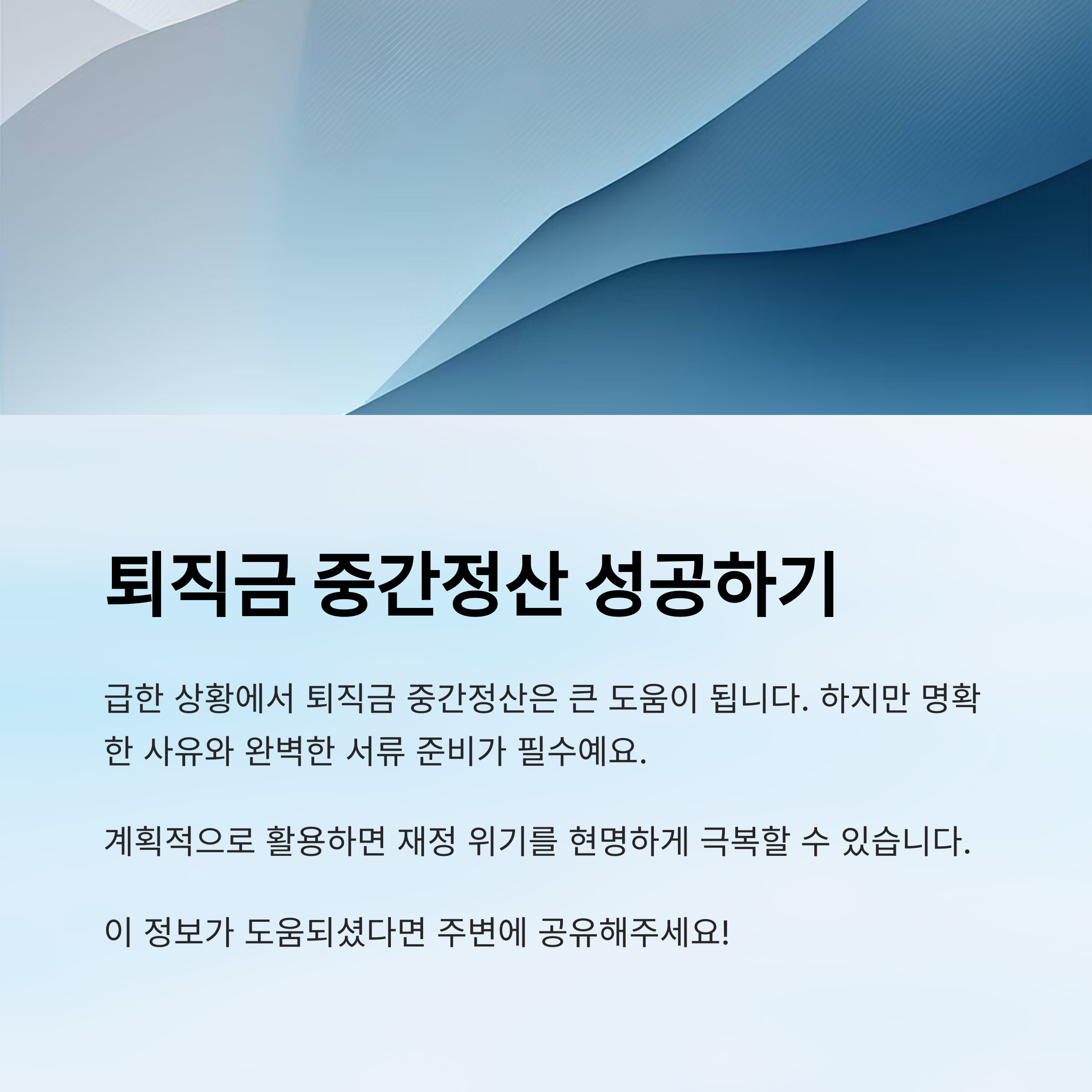 정리하자면, ‘사유 명확 + 서류 정확 + 회사 규정 숙지’ 이 3가지가 성공적인 중간정산의 핵심이에요.