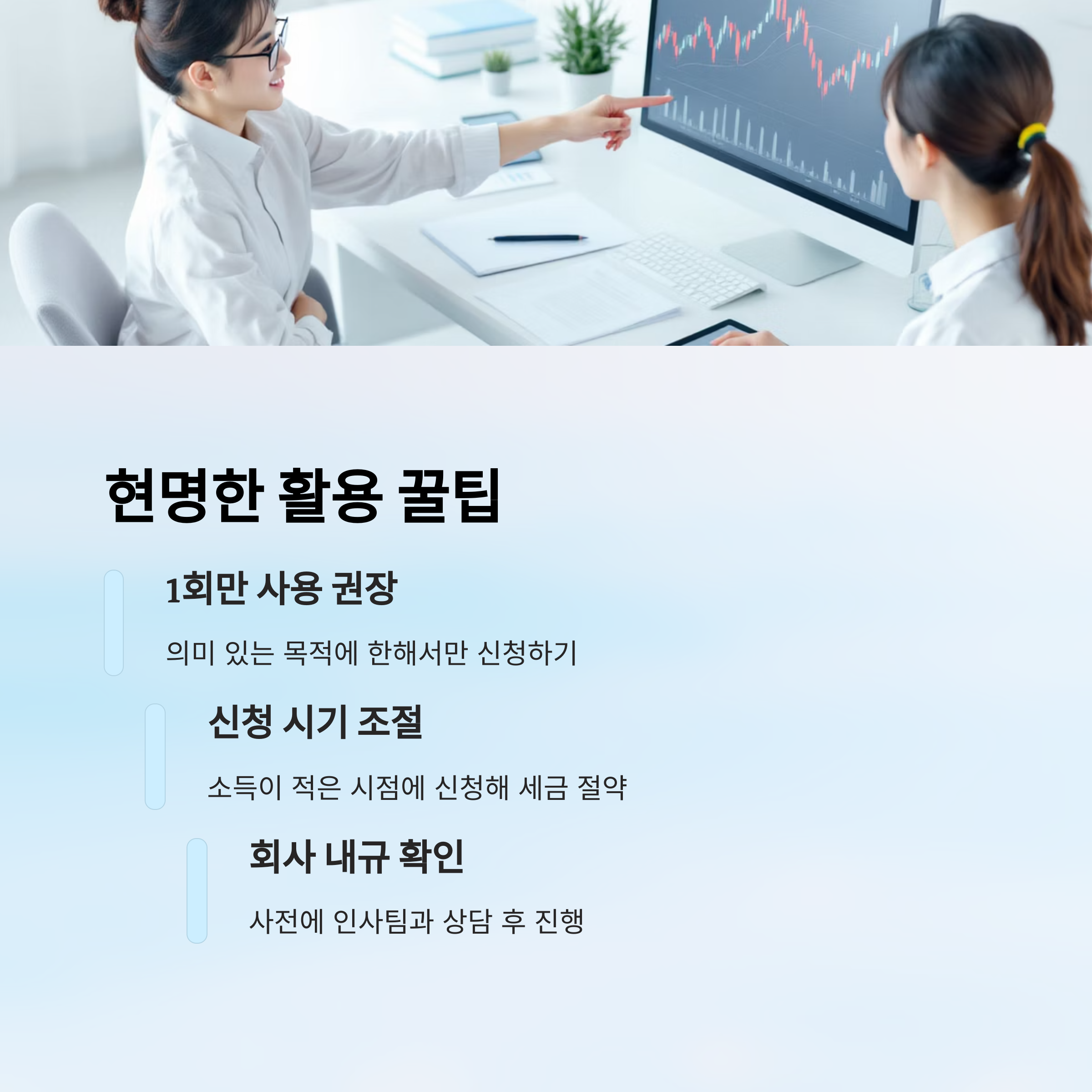 첫 번째 팁은 **"가능하면 한 번만 사용하기"**예요. 퇴직금 중간정산은 법적으로 여러 번 할 수 없고, 대부분 회사들도 1회로 제한하고 있어요. 따라서 정말 급한 상황, 예를 들어 집을 사거나 큰 치료비가 발생했을 때 한 번만 사용하는 게 좋아요. 이왕이면 최대한 의미 있는 목적에 써야 후회가 없겠죠?