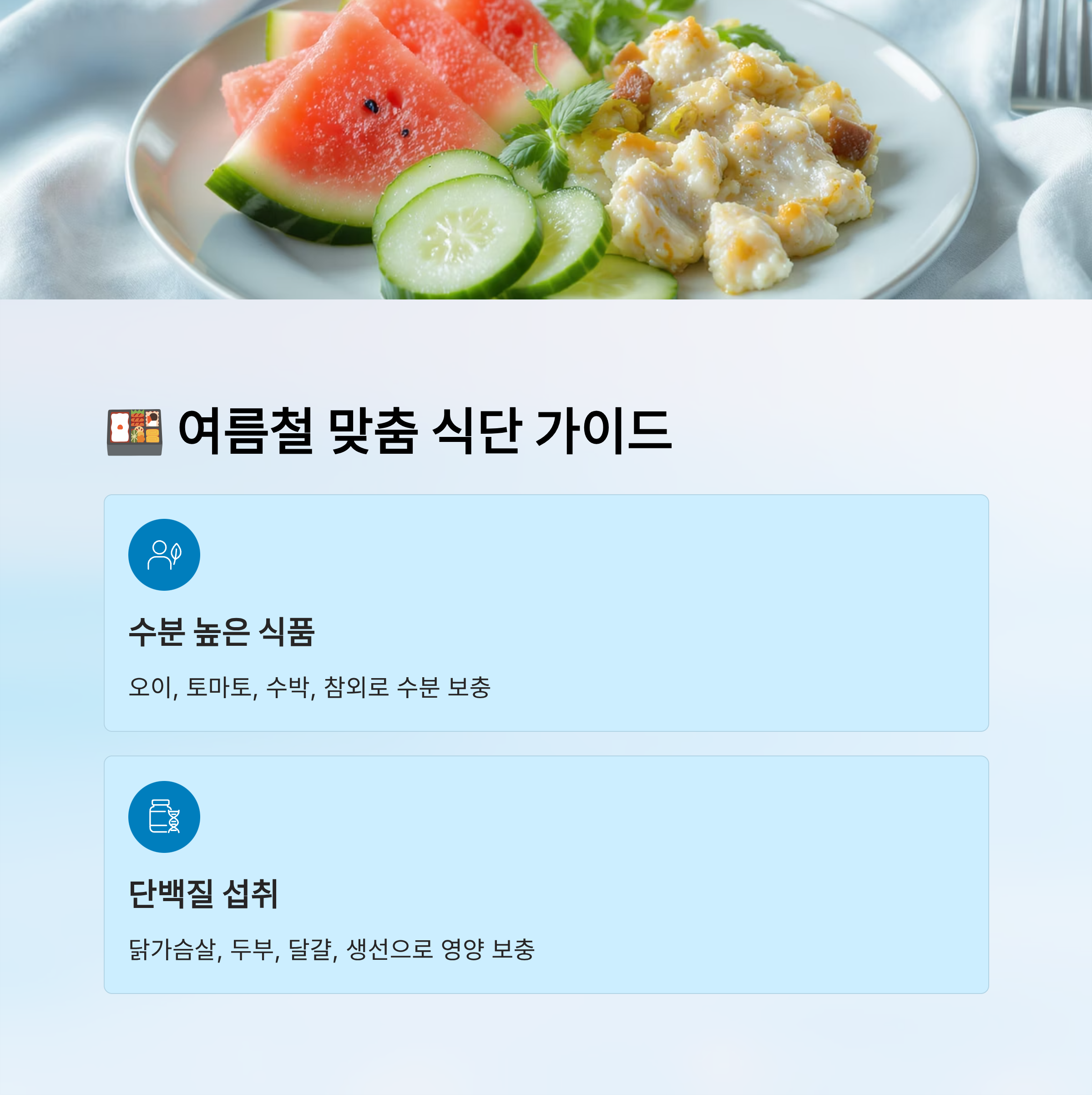 여름엔 체력 소모가 커서 입맛이 줄어드는 경우가 많아요. 그렇다고 끼니를 거르면 오히려 탈수나 전해질 불균형을 유발할 수 있어요. 식사는 가볍게, 그러나 영양소는 골고루 챙기는 게 핵심이에요.