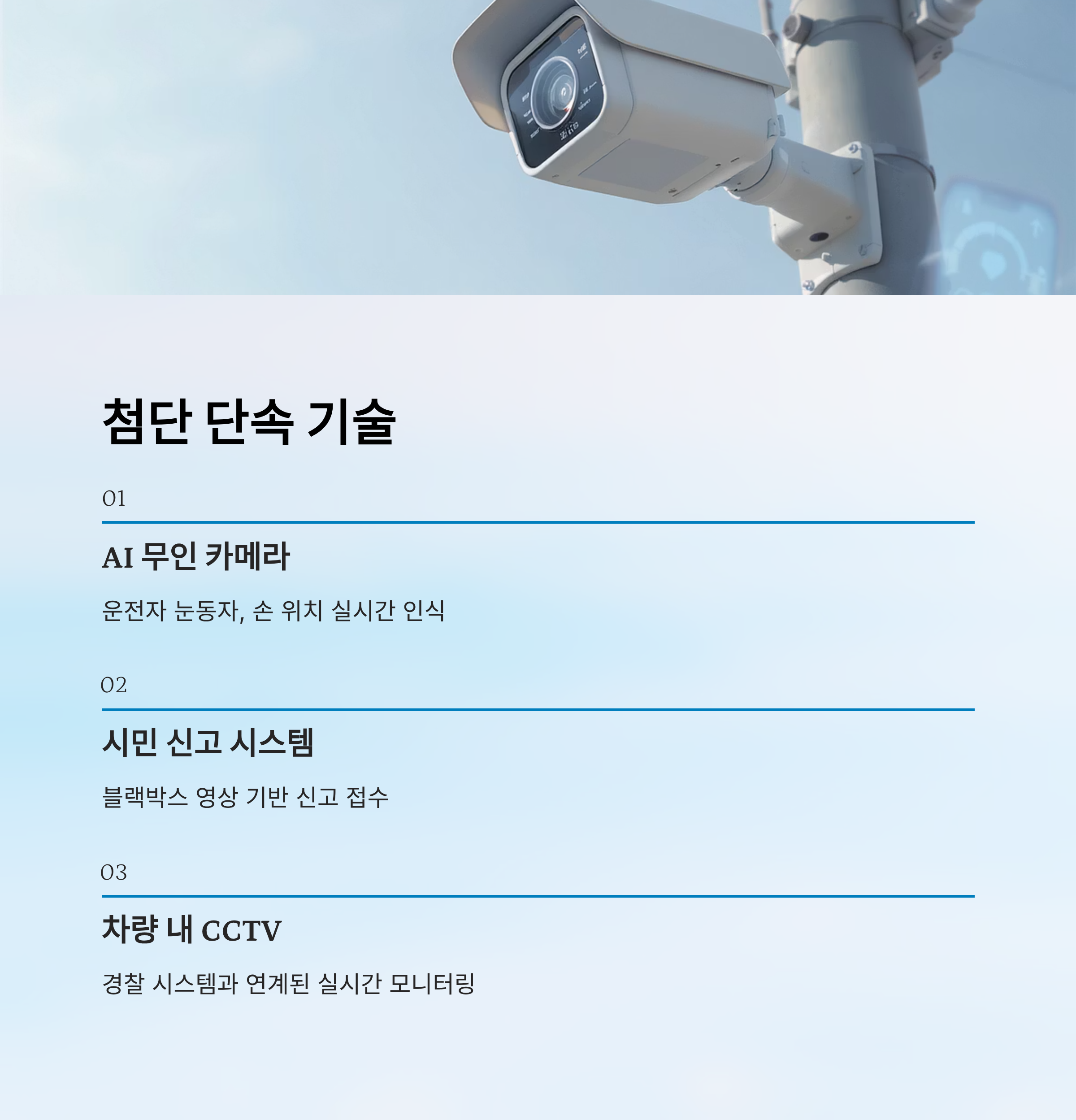 | AI 무인단속 카메라 | 한국, 호주, 중국 | 얼굴·손 위치 인식 가능 | 단속 건수 급증 |