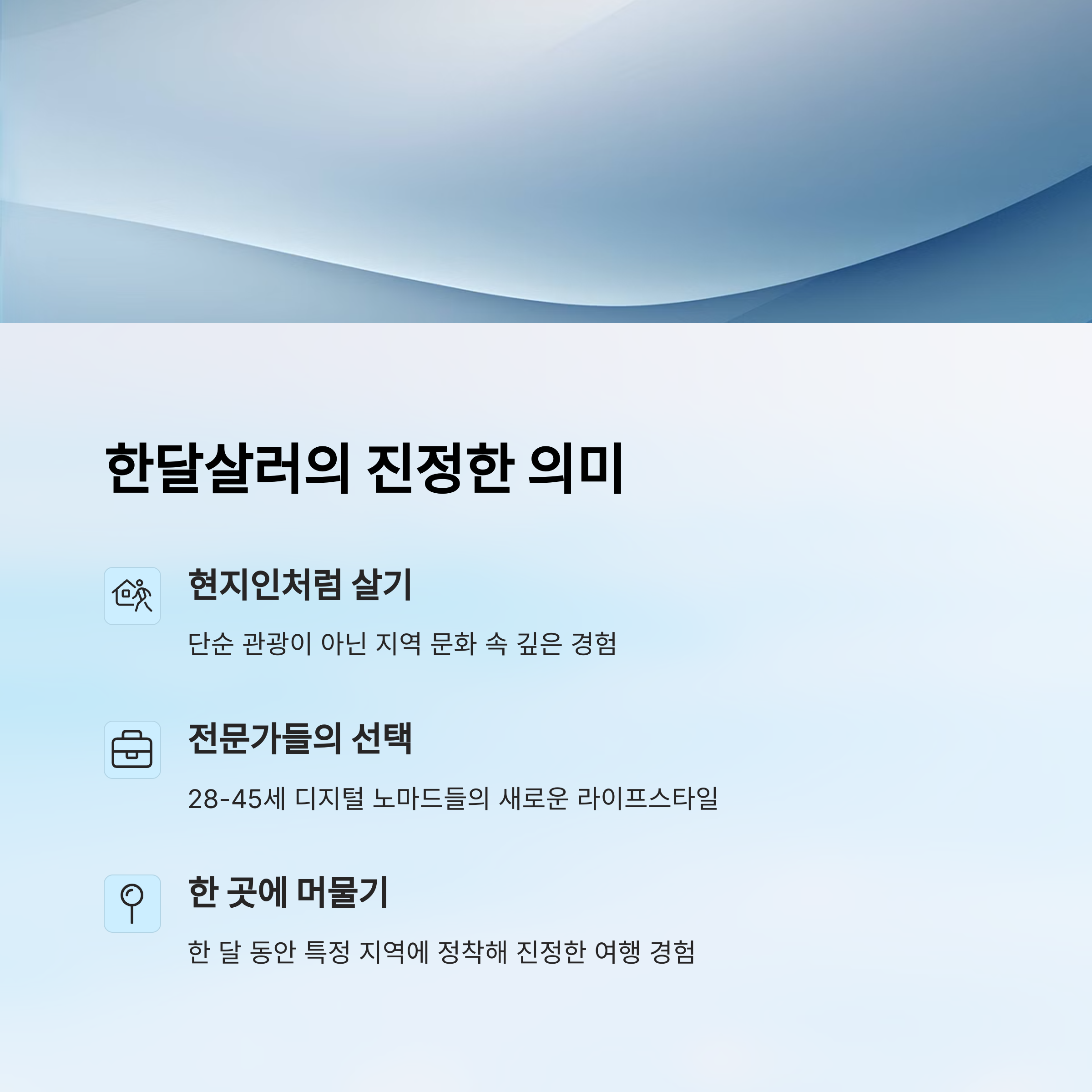 요즘 많은 사람들이 일상의 탈출을 꿈꾸며 선택하는 트렌드, 바로 ‘한달살러’예요. 단순히 여행지를 잠깐 스치듯 방문하는 게 아니라, 그 지역의 삶을 직접 체험하고 느껴보는 여유로운 시간이에요.
