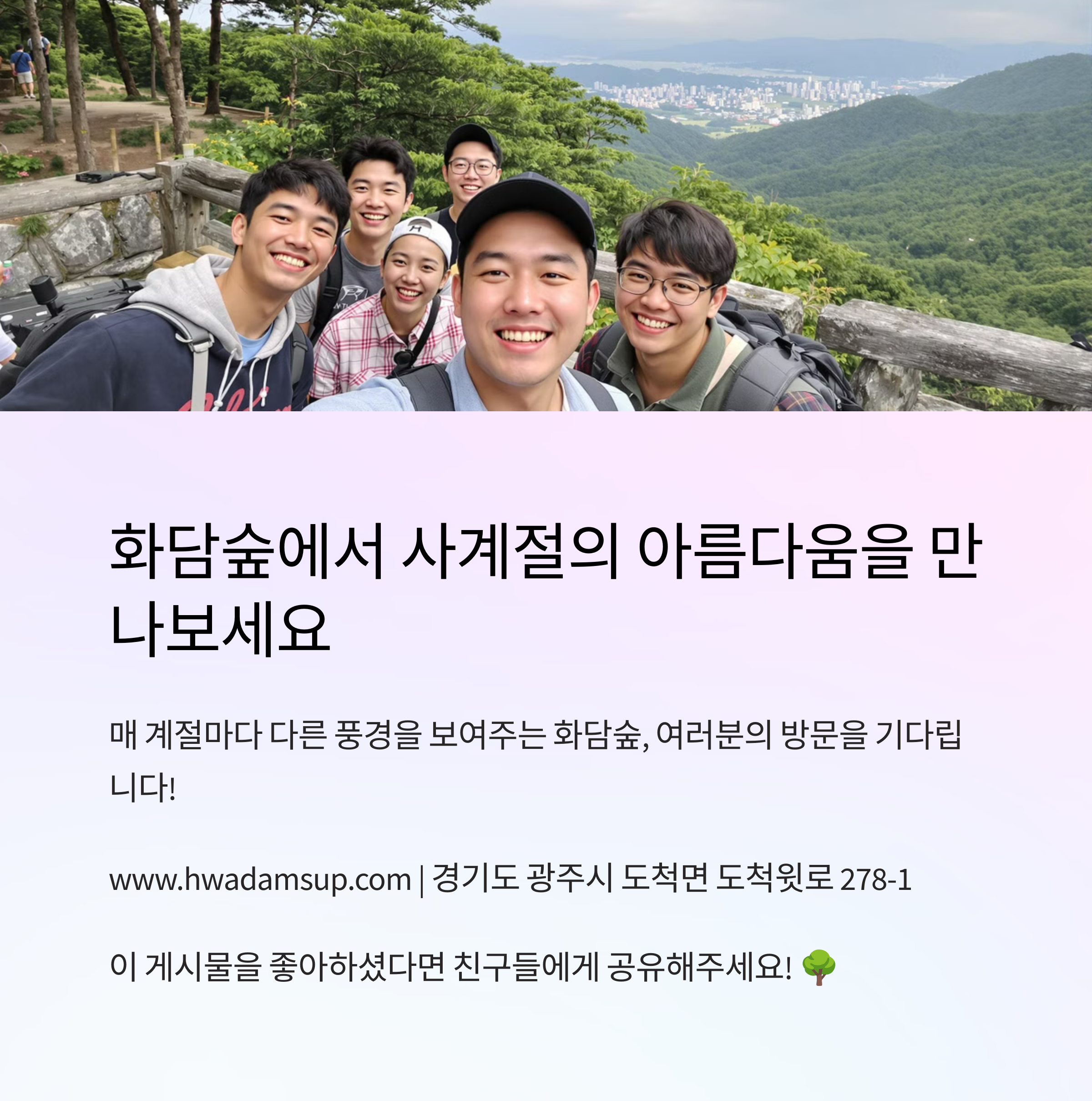 **봄날, 벚꽃과 철쭉이 가득한 화담숲에서 로맨틱한 순간을 즐겨보세요!** 🌸💕 다음은 🌿 '여름, 푸른 숲속 힐링 산책 코스'를 알려드릴게요! 😊