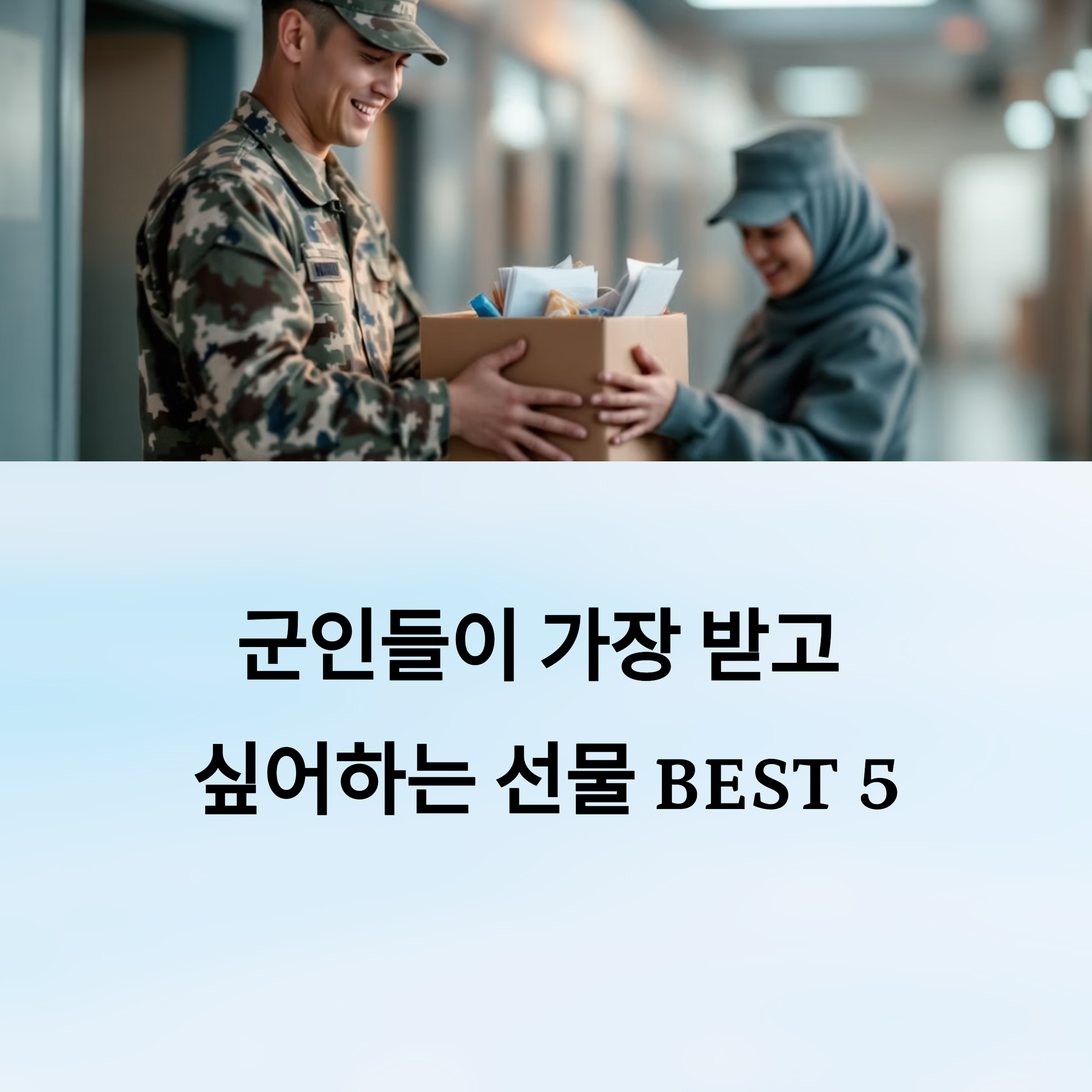 지금부터 군인들이 가장 받고 싶어하는 인기 선물 BEST 5를 소개할게요! ✨