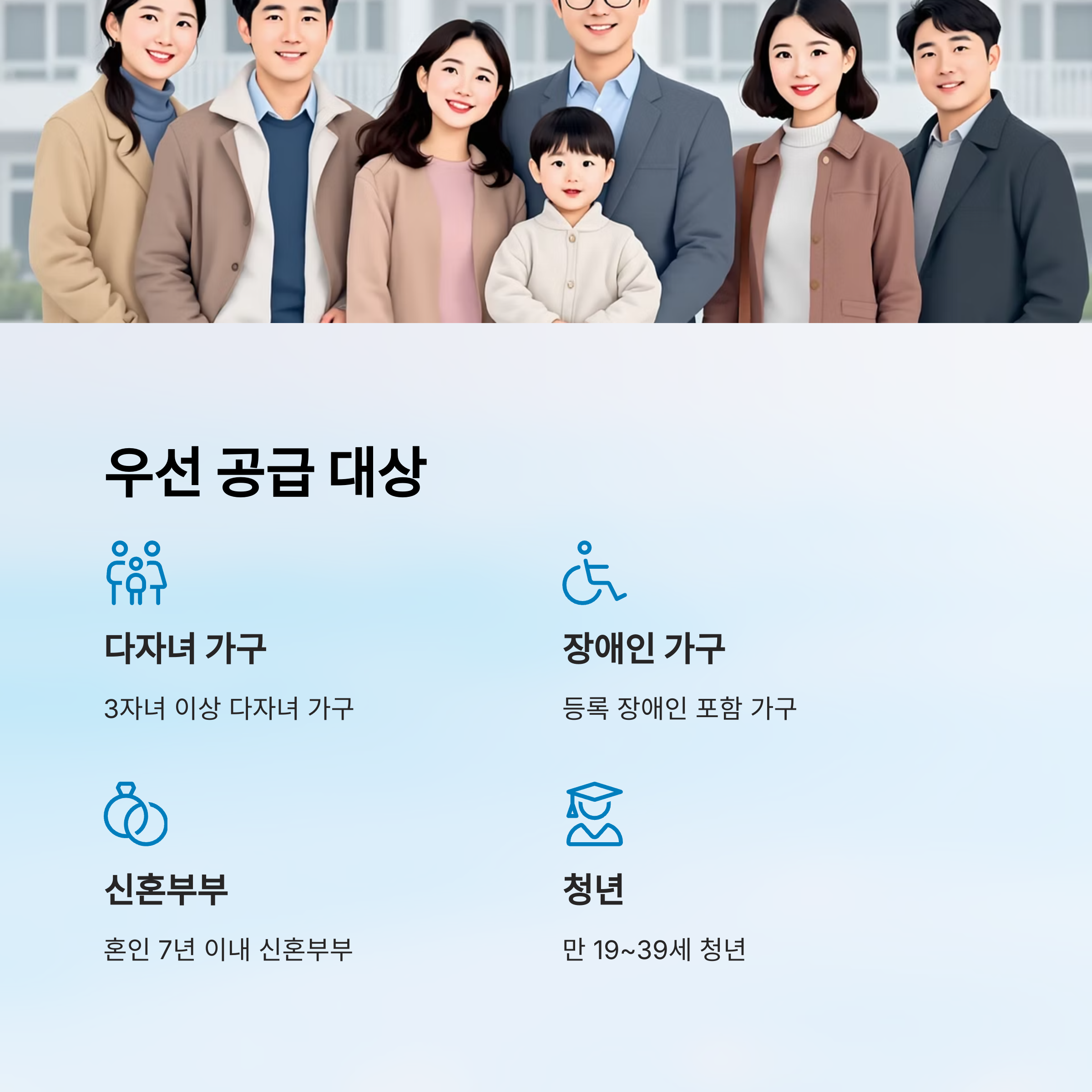| 👨👩👧👦 다양한 유형 | 청년, 신혼부부, 고령자 등 맞춤형 공급 |