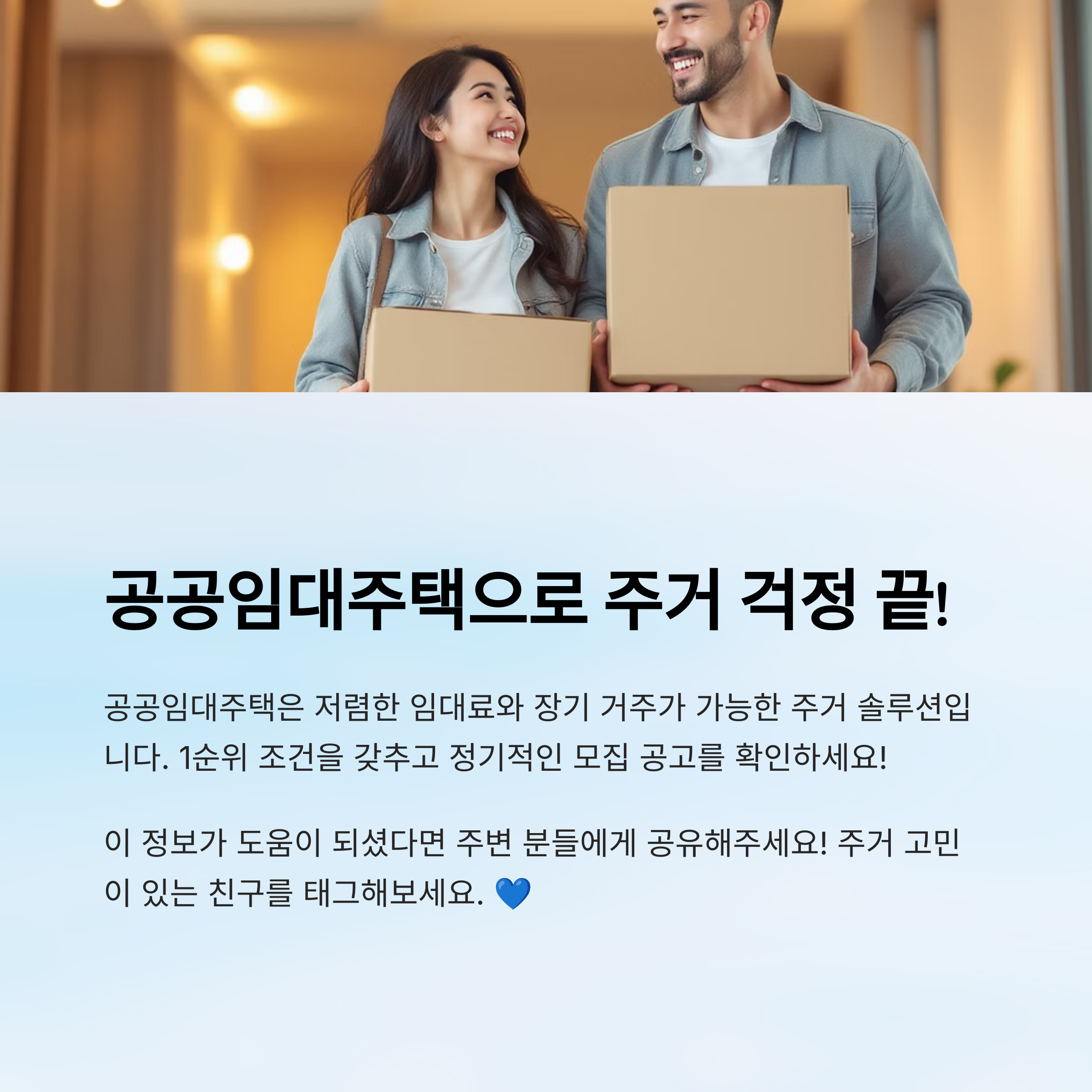 🏡 공공임대주택을 신청할 때 1순위 조건을 갖추고, 정기적인 모집 공고를 확인하세요! 😊 신청 성공을 응원할게요! 💙
