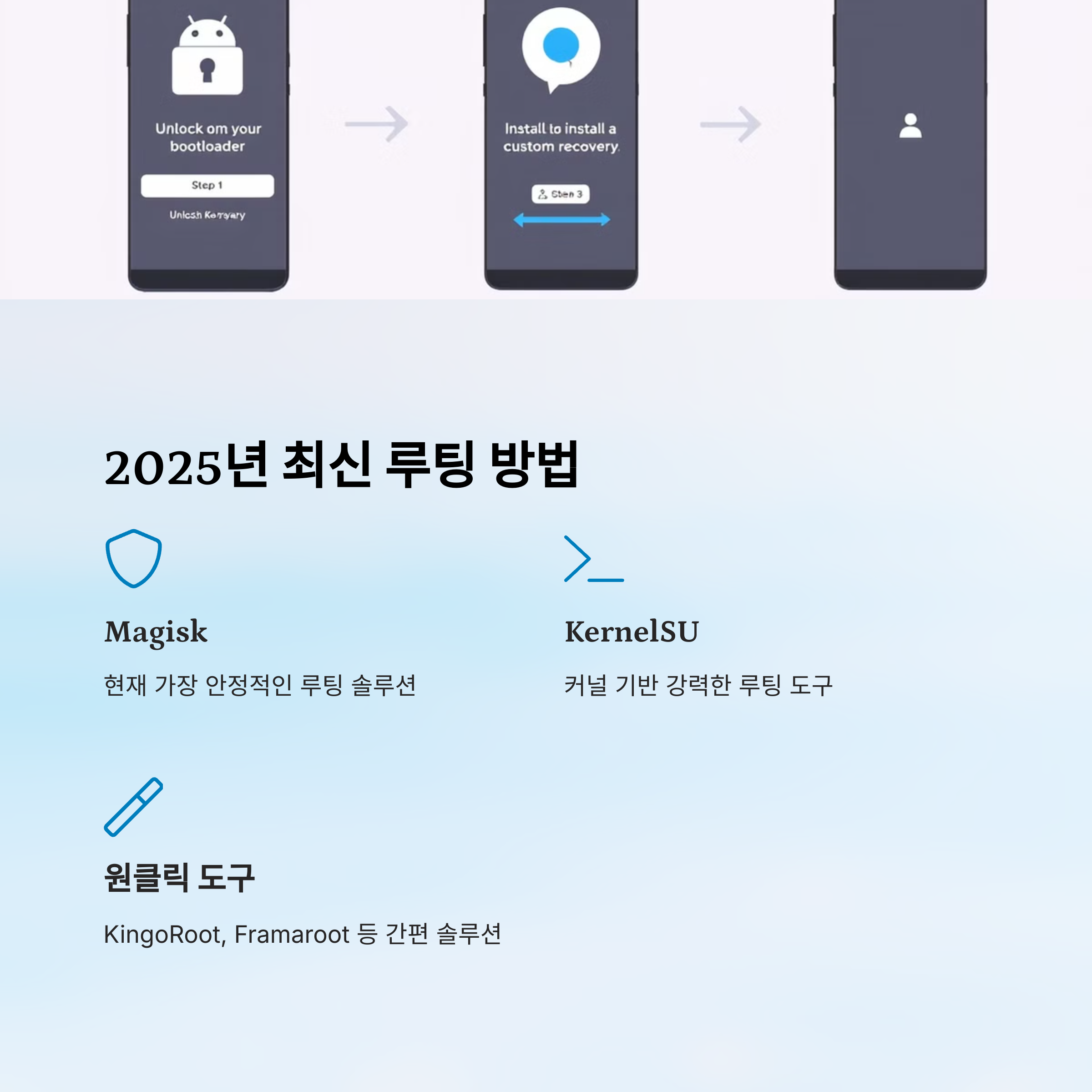2025년 현재 루팅 방법은 과거보다 간편해졌지만, 기기와 안드로이드 버전에 따라 방식이 다르기 때문에 꼭 본인 기기 정보에 맞춰 진행해야 해요.